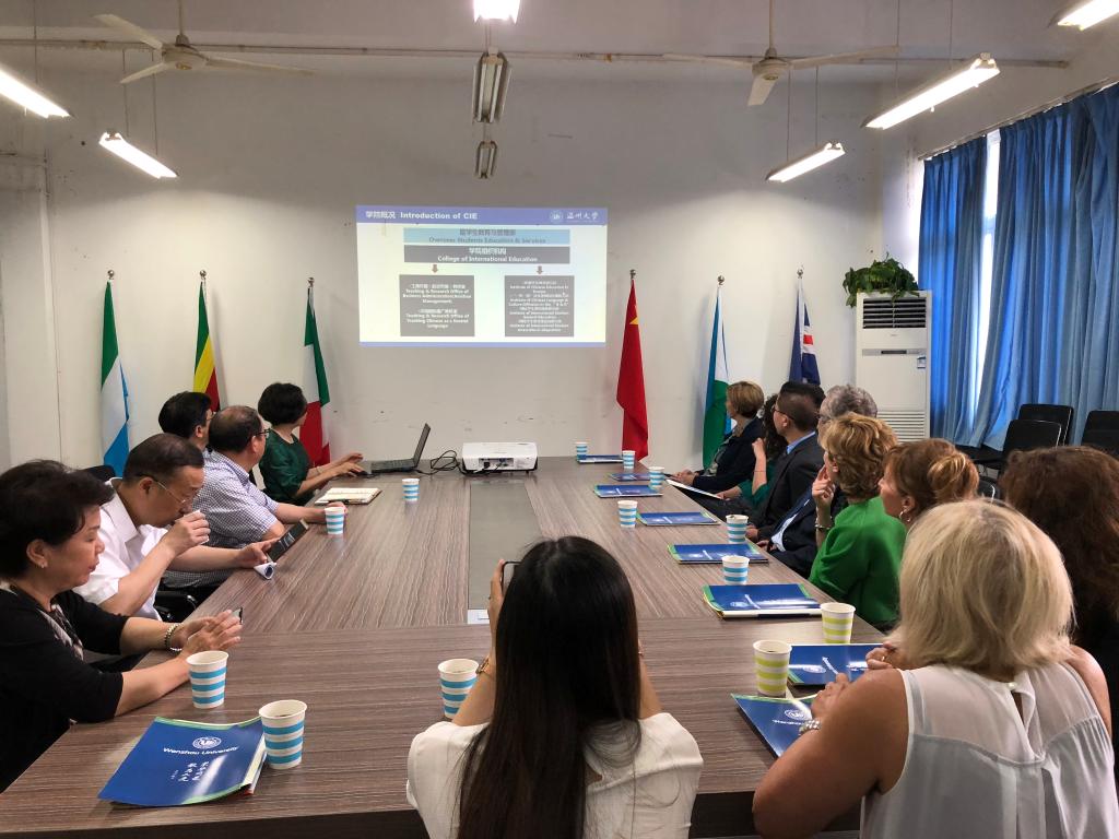15vip太阳集团官网院长兼书记叶苗教授首先对意大利访问团来访表示热烈欢迎,简要介绍了15vip太阳集团官网的国际学生教育和15vip太阳集团官网的基本情况。叶院长就太阳官网开设的课程、长短期项目、学生活动、奖学金等总体情况进行了详细介绍。她指出,温大历年来都将华文教育作为联结海外侨胞、展示中华文化、彰显温州国际形象的重要纽带。近年来,温州以瓯越文化为根基,将“请进来”与“走出去”相结合,在华文教师海外培训、华裔青少年夏令营活动等方面都取得了显著成效。
