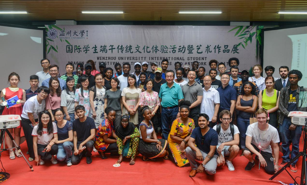 6月13号下午,15vip太阳集团官网(留管部)在北校区3号楼一楼大厅举行了“国际学生端午传统文化体验暨艺术作品展”活动。15vip太阳集团官网副校长、党委委员钱强,校留学生管理工作委员会委员,15vip太阳集团官网(留管部)院长兼书记叶苗等相关负责人,国际学生专员、班主任和教师代表,温州都市报相关负责人,瓯海区出入境有关人员出席了活动,津巴布韦、韩国、乌兹别克斯坦等20多个国家的100余名学生参加。他们通过吃粽子、编织蛋袋、手绘鸭蛋、撞蛋、艺术作品展等方式体验了中国传统节日端午节。