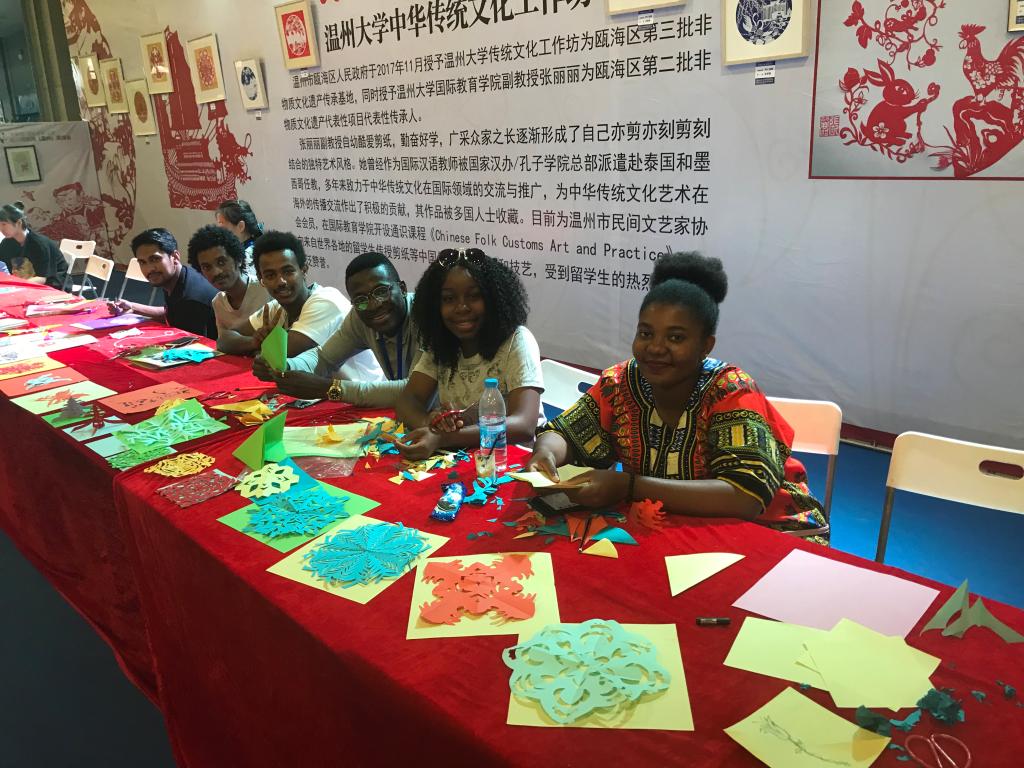 据悉,我校15vip太阳集团官网已成立传统文化工作坊,并于2017年11月被温州市瓯海区人民政府授予瓯海区第三批非物质文化遗产传承基地,张丽丽副教授被授予瓯海区第二批非物质文化遗产代表性项目代表性传承人。近几年,15vip太阳集团官网在向国际学生推广中国文化方面做了很多工作和努力。院长兼书记叶苗教授表示,“国之交在于民相亲,民相亲在于心相通”,学院重视向国际学生传播中国传统文化,有意识地在通识教育中设置了与中国传统文化相关的课程,如中国武术、中国剪纸、中国书法等等。希望中国留学生通过学习剪纸等通识课程能够深入了解中国文化,毕业回国后主动成为连接自己国家和中国文化的使者。