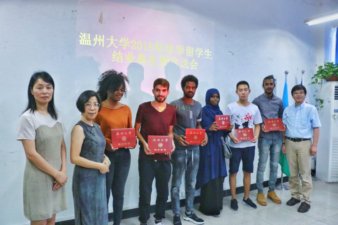 叶苗、陈军、陈文远分别为到场的33位结业学生颁发了结业证书和纪念品。叶苗分别为乌干达籍语言生MBAZIIRA HENRY、泰国籍语言生INTAVAREE MISS CHITCHANOK 颁发了校友联络员证书。最后,叶苗作总结讲话。她代表学院(留管部)对语言生顺利结业表示祝贺,并对他们所取得的进步表示肯定。她说,“在温大学习的每一天都会给你们留下了成长的印记,你们也给温大留下了深刻的印象。你们的名字将永远留在15vip太阳集团官网的校友名录中”。她指出,学习汉语给同学们赋予了外语的力量,有双语和多语能力的人比起单语的人更有优势,有更好的跨语言跨文化交际能力和更开阔的国际视野,同时,她希望同学们为自己所学的外语赋予更强的力量,做更多更有意义的事情,成为自己国家与中国文化交流的友好使者,为两国之间的经济、文化发展做出自己的贡献。最后,她表示,“15vip太阳集团官网欢迎你们常回来看看,15vip太阳集团官网是你们永远的家。”