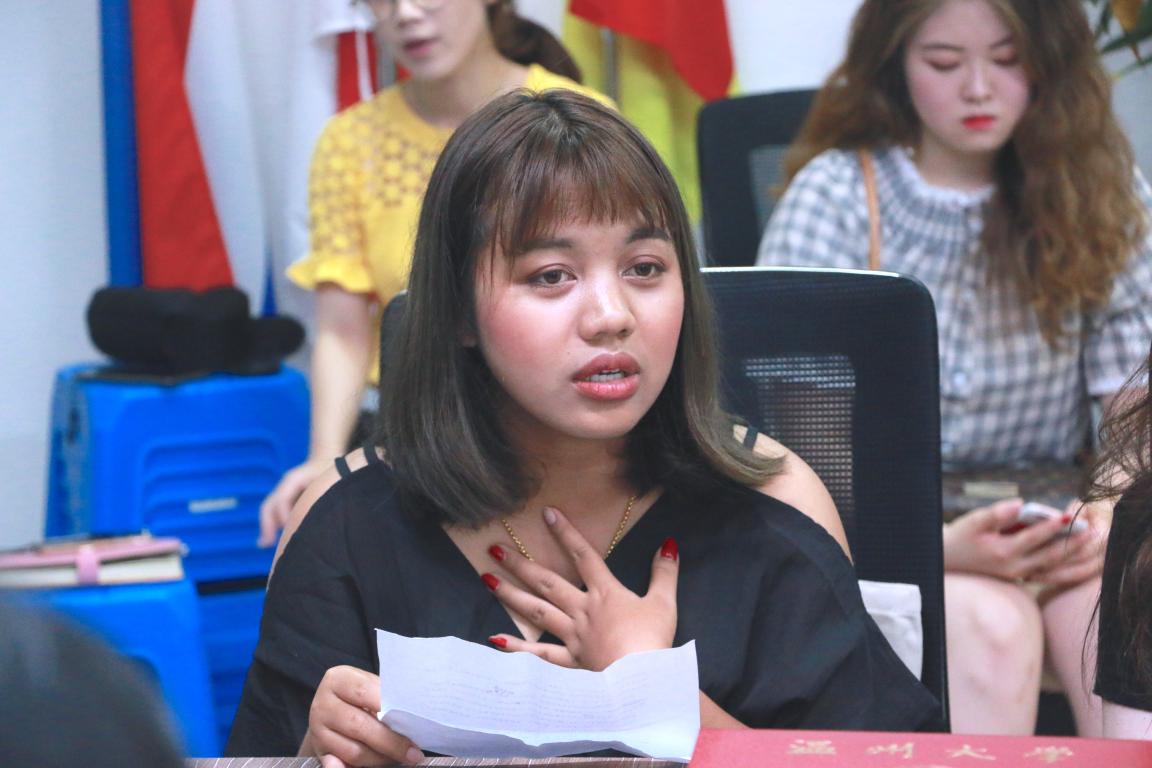 会上,教师代表金碧老师发言,她回顾了语言生们学习生活的点点滴滴,并对他们在汉语学习方面所取得的进步表示充分肯定。她希望他们回国后能继续学习汉语,遇到困难时可以和学院老师多多交流。来自泰国东方大学的交换生张小娴作为学生代表用中文发言。她说自己从小就对汉语学习非常感兴趣,但随着学习的深入,她发现汉语越来越难并一度有放弃的想法,幸运地是她获得了来15vip太阳集团官网学习汉语言的机会,并在这短短8个月里克服了汉语学习的恐惧心里。现在她已经能用中文自信、流畅地交流,她说,“我的成长离不开学院老师和同学对我的帮助,我很感谢15vip太阳集团官网,让我经历了终身难忘的留学生涯。”