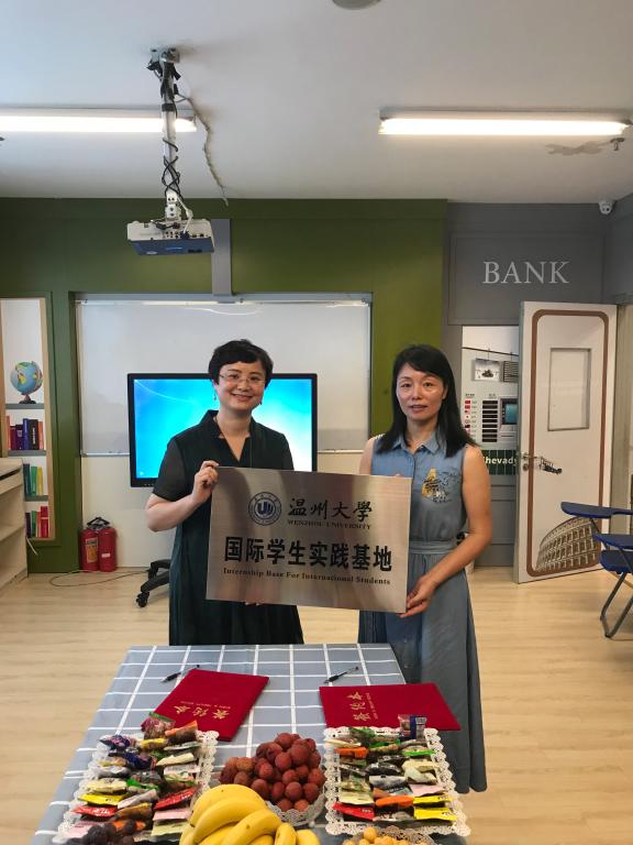 7月12日上午,15vip太阳集团官网(留管部)与温州吉的堡少儿英语学校签订合作协议,共建国际学生实践基地。学院党总支副书记陈文远、国际学生社区中心主任陈康豪、辅导员钱江潮及来自4个国家7个专业的9名国际学生代表参加。温州吉的堡少儿英语学校校长方小和及教师代表出席。