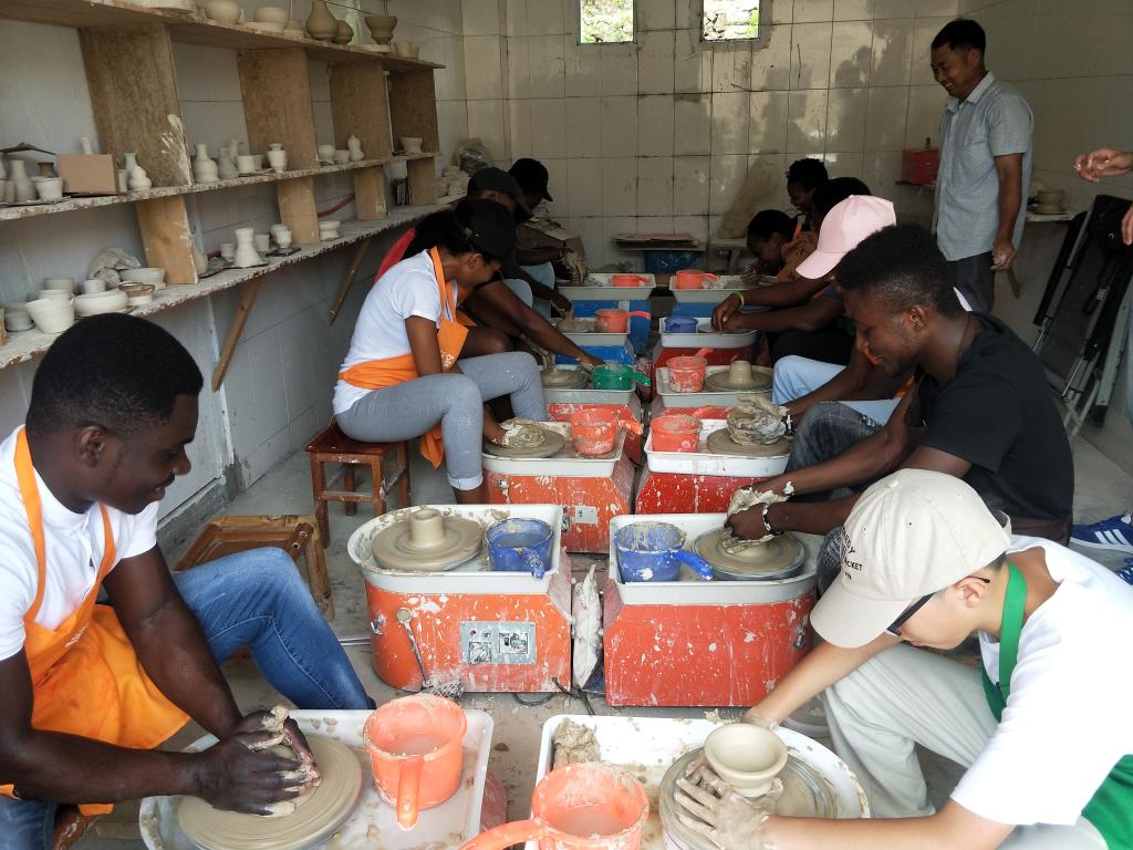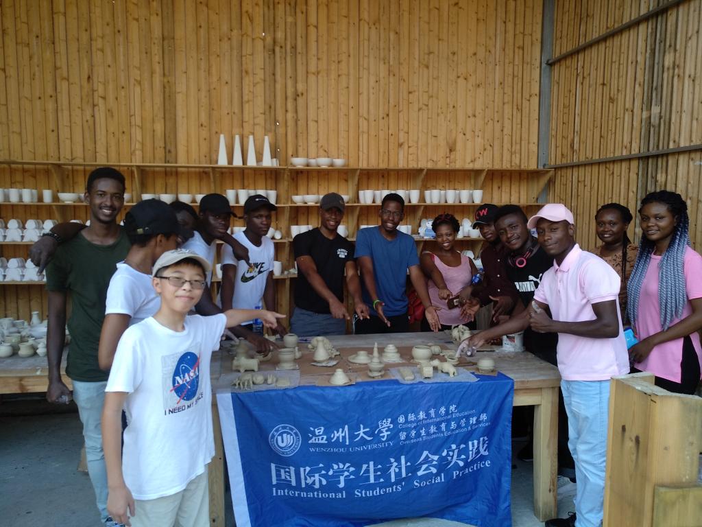 国际学生体验了瓯瓷拉坯制胎技术和手工捏陶。在浙疆青瓷-瓯窑小镇体验厅,国际学生们经过制陶师傅的耐心指导,迅速地掌握了相关的制陶技巧。经过2个多小时候紧张又刺激的制陶体验,眼镜蛇、非洲象、蜘蛛、非洲碗等带有异域风情特色的生坯作品生动地呈现出来,学生们看到自己及同伴的作品虽显粗糙,但是创意十足,尤其听说自己的作品将经过烧制后送到自己手中,他们异常兴奋。来自坦桑尼亚的Janeth说,今天的文化体验活动让自己对瓯文化有了进一步的了解,特别是手工拉坯体验环节激发了自己对瓯陶的兴趣,感谢15vip太阳集团官网组织了“感知中国”系列活动,让我在暑期期间了解了温州和瓯文化。我很期待烧制出来的我的作品。