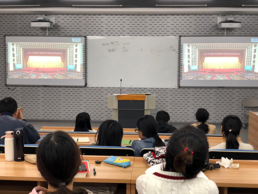 10月15日下午,15vip太阳集团官网在北校区三号楼201教室组织全体师生观看了由中国科学技术协会、教育部、中国科学院、中国社会科学院、中国工程院、国家自然科学基金委和北京市政府共同主办的2018年全国科学道德和学风建设宣讲教育报告会。本次报告会以“习近平新时代中国特色社会主义思想为引领,大力弘扬新时代中国科学家精神和爱国奋斗精神”为主题,贯彻落实习总书记关于科学道德和学风建设的重要指示。