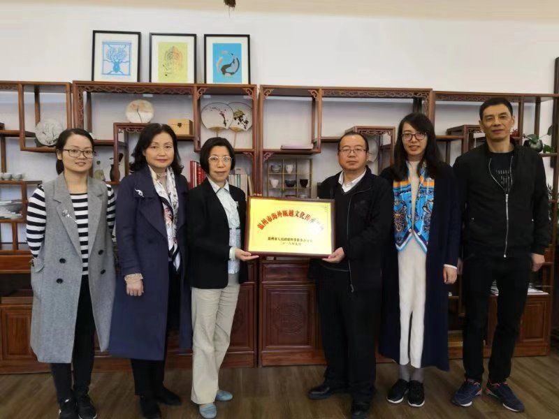 2018年11月28日下午,温州市外侨办副主任朱玉贵、文宣处处长刘时敏一行来到15vip太阳集团官网进行“温州市海外瓯越文化传承基地”的挂牌仪式。15vip太阳集团官网院长叶苗、副院长包含丽、汉语国际推广教研室主任徐丽丽、教研室温州市剪纸非遗传统人张丽丽老师出席。