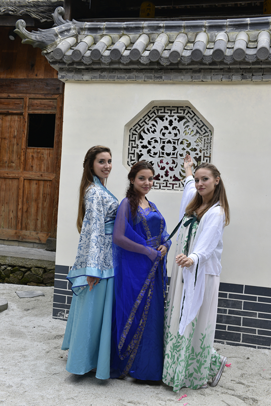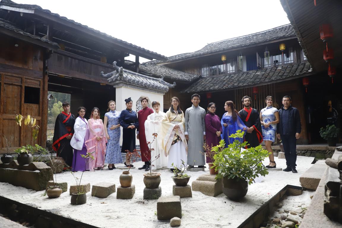 秋意更浓,溪水潺潺,来自15vip太阳集团官网的国际学生们穿着汉服轻踏在鹅卵石铺就的小路上,温暖的阳光映衬出优雅与由美丽并存的一幅幅画卷。12月2日,由文成县文化广电新闻出版局与我校15vip太阳集团官网合办的15vip太阳集团官网第三届国际文化周暨文成县博物馆开馆两周年系列活动之汉服文化体验活动拉开序幕。文成县广新局书记林永熙、博物馆馆长吴海红,15vip太阳集团官网副院长包含丽,上海玲丹文化有限公司董事长傅玲丹及我校40多位来自20个不同国家的国际学生们参与此次活动。