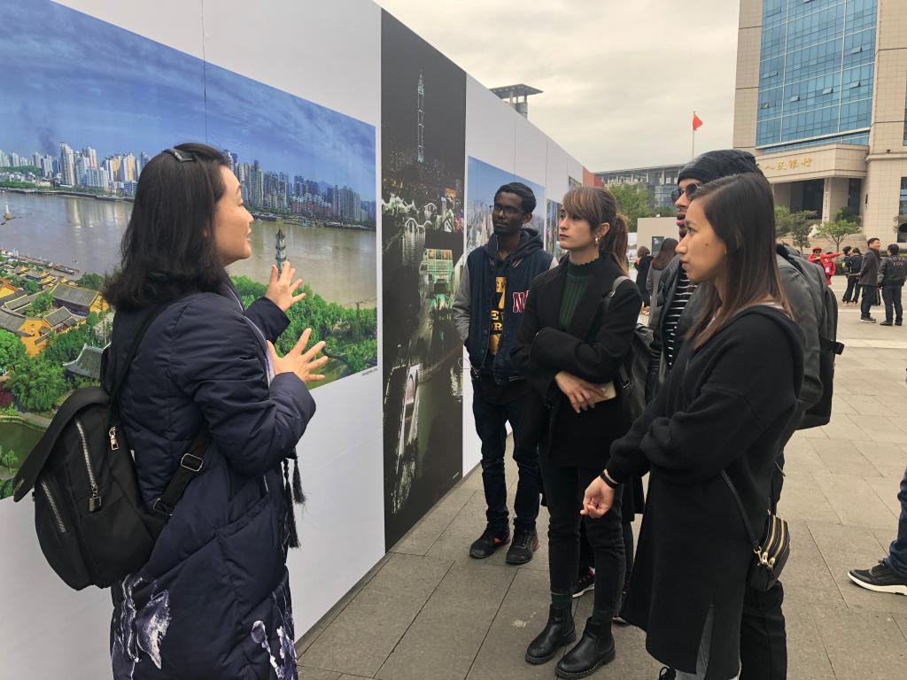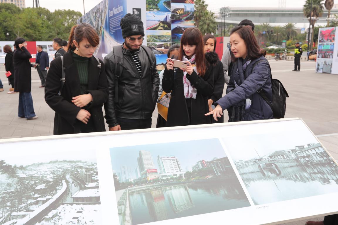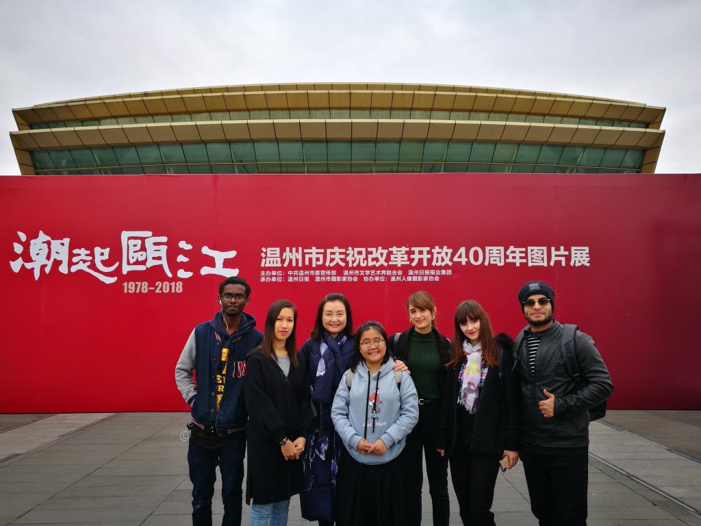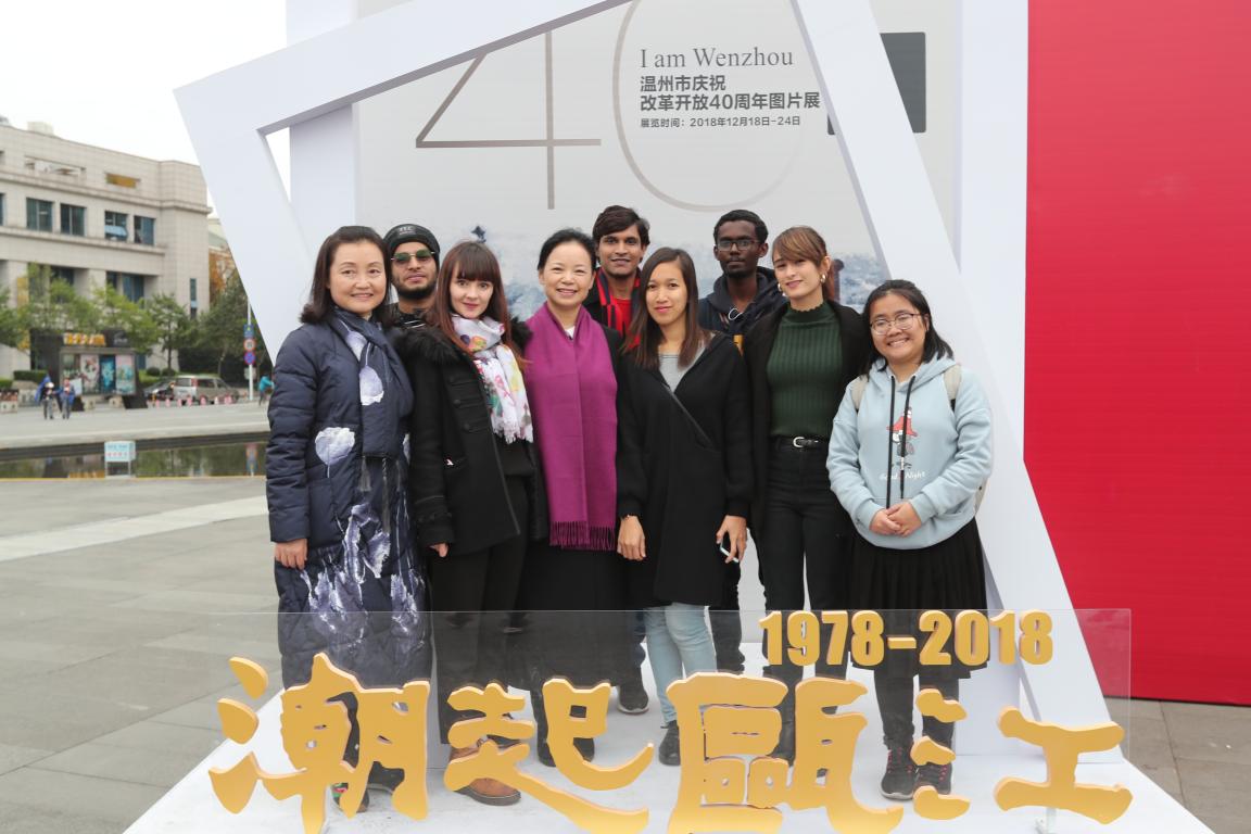 12月26日下午,15vip太阳集团官网组织“一带一路”沿线国家的部分国际学生参观了在温州大剧院广场上举办的《潮起瓯江——温州市改革开放40周年图片展》,深切感受到温州改革开放40年来的沧桑巨变,为温州和中国40年来所取得的巨大成就所鼓舞。