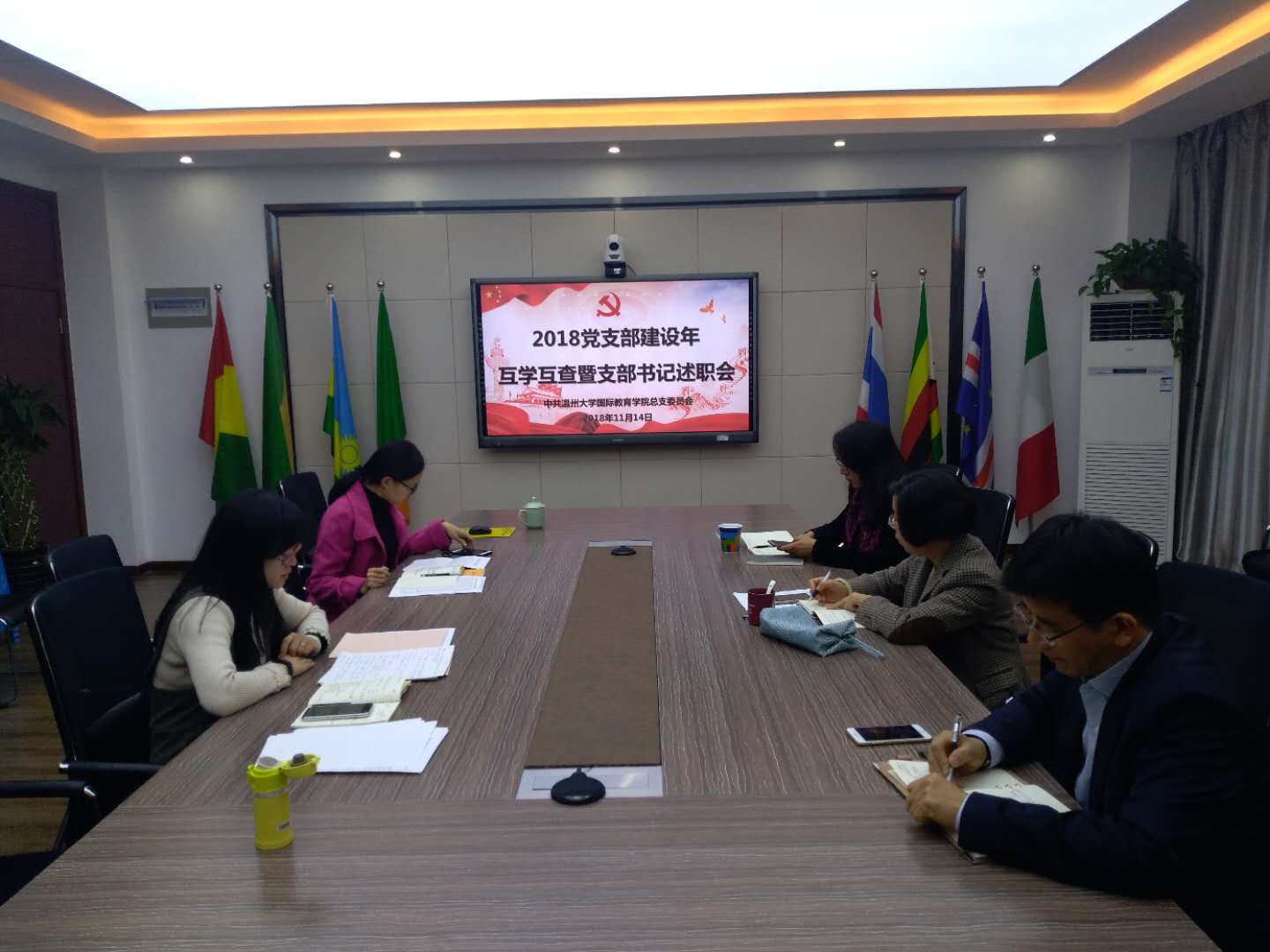 会上,教工第一党支部书记廖一帆和教工第二党支部书记谢坚就2018年的支部各项工作进行了汇报,并重点就“书记项目”进行了亮点展示和分享。其中,教工第一支部的“讲好中国故事,培养知华爱华国际学生”项目、教工第二支部的“以生为本,服务先行”项目,通过党建与国际学生教育、国际教育科研和教改工作、国际学生实践基地创新建设、服务温大国际化等工作,充分发挥了党员先锋模范作用,创新服务国际学生的方式和方法,全面提升了服务国际学生的质量。