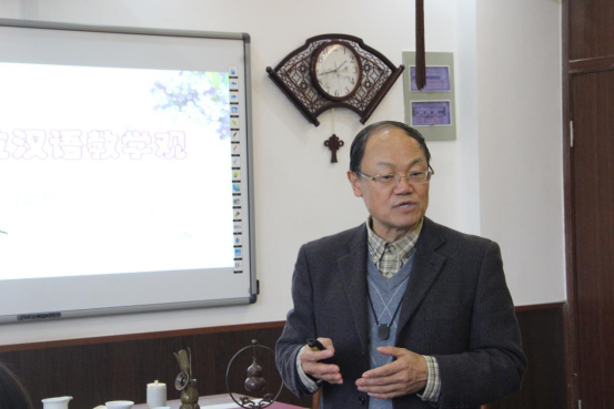 2019年4月3日下午,湖北工业大学周金声教授来太阳官网做《字词本位汉语教学观》的专题讲座。15vip太阳集团官网叶苗院长主持讲座,15vip太阳集团官网包含丽副院长、陈文远副书记及汉语国际推广教研室的全体老师出席。
