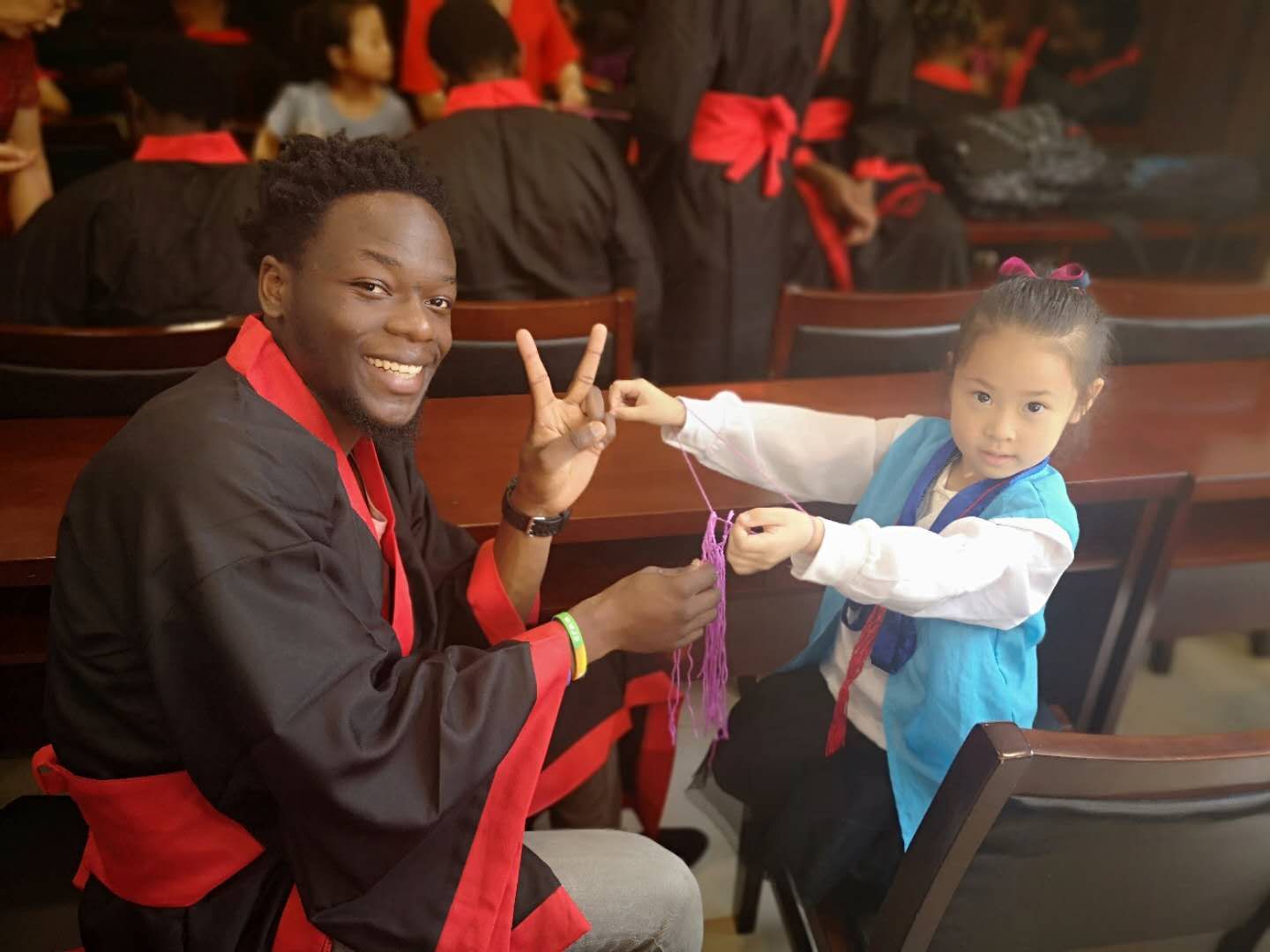 6月4日上午,国际学生走进龙湾区状元街道银龄养老服务中心参加“跨越国界的爱——外国学生走进社区之端午敬老公益活动”。来自坦桑尼亚、尼日利亚等国家的学生为老人们表演了小组唱《We Are The World》,寓意四海皆一家,携手共创美好明天。在文体互动区,国际学生与老人们一起打桌球和乒乓球,跟着书法大师学写汉语毛笔字,为老人们表演篮球友谊赛,还与老人们共进午餐,祝福老人健康长寿。此次“情系端午节,爱在养老服务中心”之行让国际学生了解了温州市养老服务情况,看到了老人们安心、舒心的环境,感受到了老人们晚年老有所居、老有所依、老有所乐的幸福生活。当他们得知舞台上表演武术的老人已经81岁高龄,依然精神矍铄时,不禁发出赞叹。2016级国际学生MUTENHWA ALFRED TAFADZWA感慨道,“今天真是个美妙的日子,感谢学校给我一次这么重要的机会,在端午节前来到这里,提醒我们要学会照顾老人,这在全世界都是一样的。”