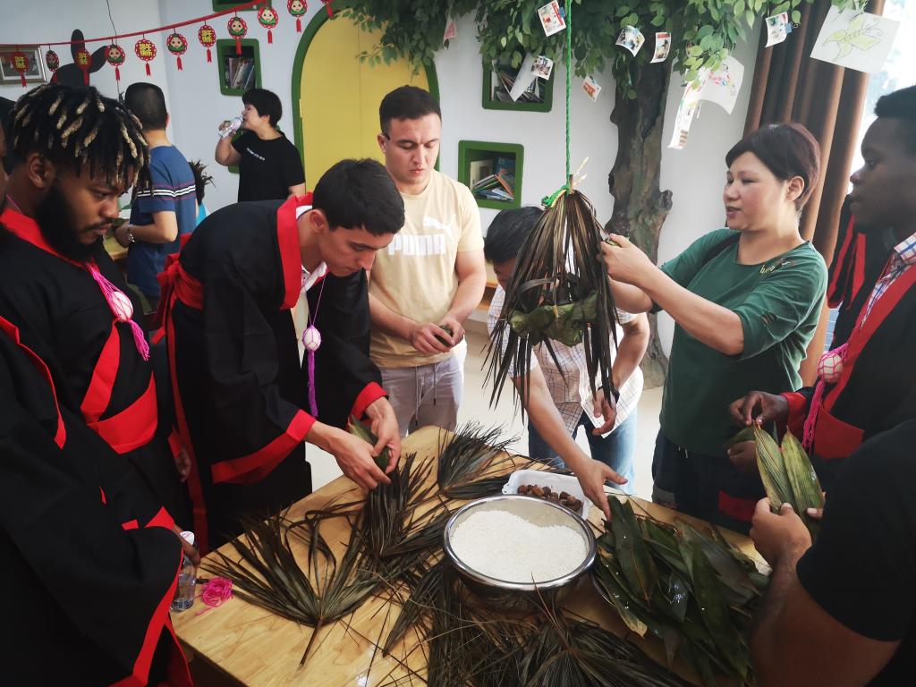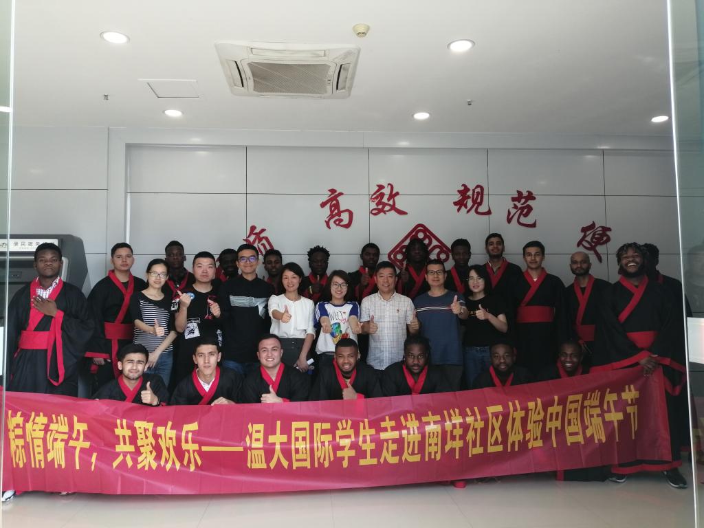 在中国传统端午节来临之际,国际学院(留管部)组织了来自26个国家18个专业的60多名国际学生走进温州社会,让他们切身体验传统端午民俗活动。