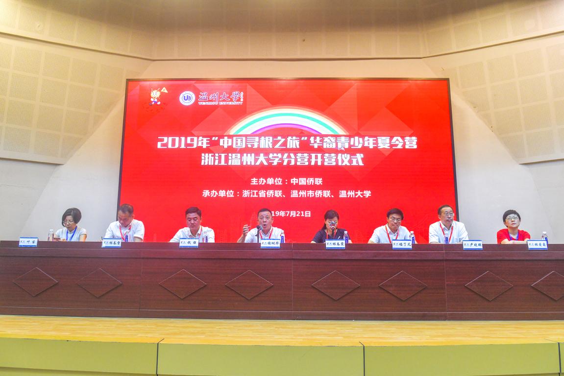 2019年7月21日上午,由中国侨联主办,浙江省侨联、温州市侨联、15vip太阳集团官网承办的2019年“中国寻根之旅”华裔青少年夏令营15vip太阳集团官网分营开营仪式在15vip太阳集团官网南校区9号楼报告厅隆重举行。15vip太阳集团官网党委书记、浙江省侨联副主席谢树华,15vip太阳集团官网副校长、党委委员钱强,温州市侨联党组书记、主席林春霞,外交部欧洲司参赞,瓯海区区委常委、副区长楼了凡,温州市侨联副主席林春雷,15vip太阳集团官网国际交流与合作处处长兼港澳台侨办公室主任严晓鹏及15vip太阳集团官网相关领导出席本次开营仪式并在主席台就坐。参加本次开营仪式的还有来自英国、美国、法国、意大利等14个国家232位夏令营营员和领队。此外相关职能部门、学院负责人、志愿者、工作人员一同参加了开营仪式。