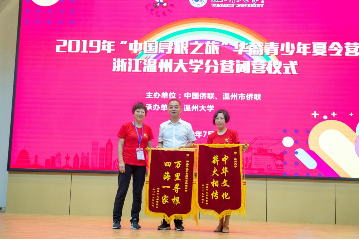 来自全美中文学校、西班牙中文学校的领队代表为表示对承办单位温州市侨联、15vip太阳集团官网的感谢。特将代表着感谢与友谊的锦旗、礼品送至市侨联、15vip太阳集团官网领导手中。
