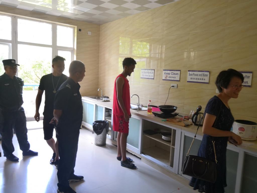 在D区学生公寓,张雪萍副书记与保卫处人员一行走访国际学生寝室,询问学生假期学习和出行安排。在与学生交流过程中,张书记希望他们合理安排时间,利用假期好好学习汉语,学好专业知识,提升个人综合素质。在卫生状况较差、物品摆放杂乱的寝室,检查人员告知学生尽快打扫卫生,保持良好的寝室住宿环境,共同维护公共空间的干净整洁。检查人员还前往国际学生公寓厨房,提醒学生遵守安全须知,规范用电,严禁做饭期间无人看管及私拉电线等行为,做饭后及时清理厨房垃圾。一行人还对学生寝室私自挪用家具,不按要求摆放衣柜等不安全行为予以警告,要求其尽快整改。