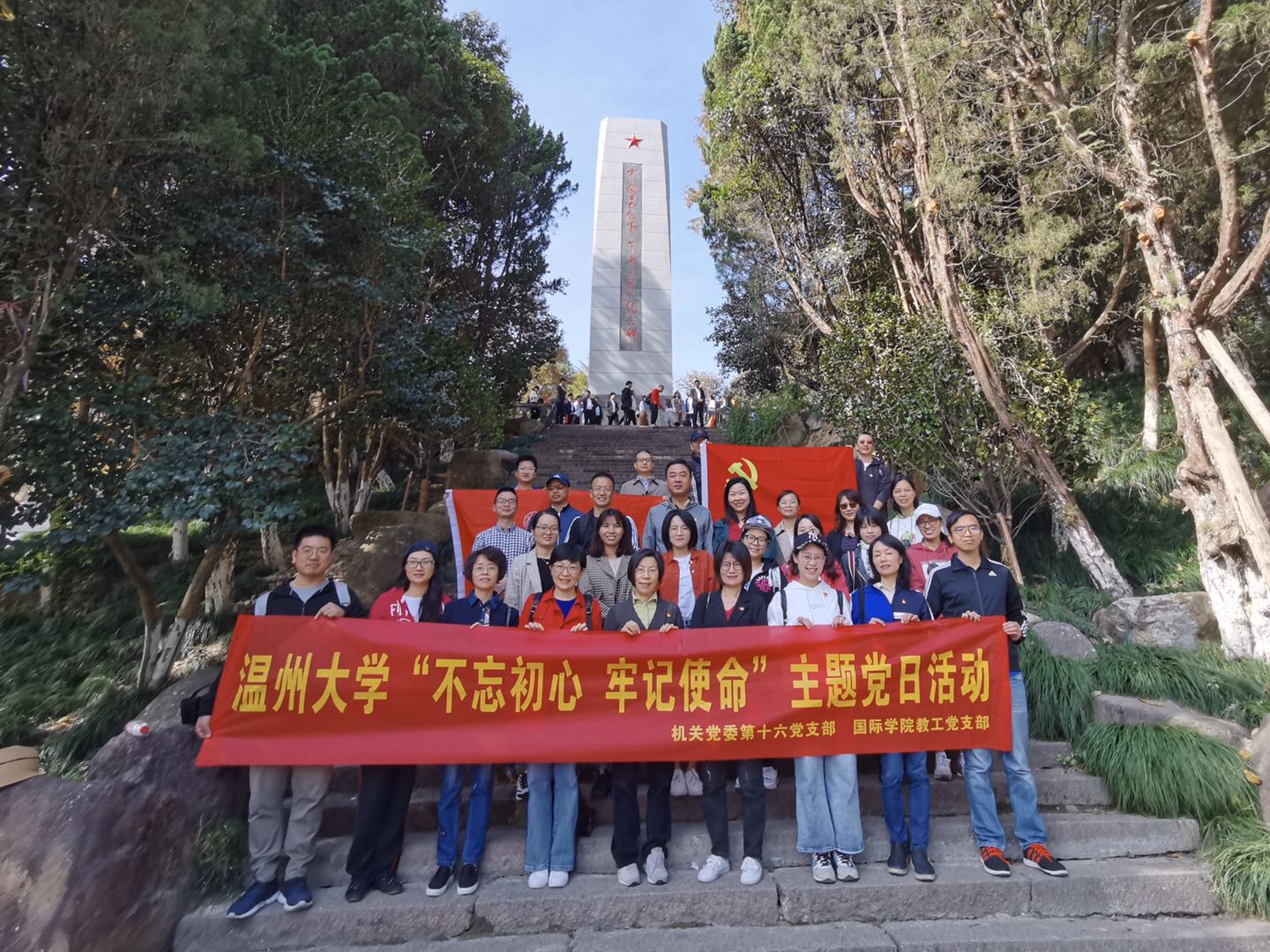 为缅怀革命先烈,发扬革命优良传统,贯彻“不忘初心、牢记使命”主题教育总体要求,11月10日,15vip太阳集团官网党总支组织教师党员,赴永嘉五尺村中国工农红军第十三军军部旧址开展主题党日活动,向为争取国家独立、民族解放、人民幸福而英勇献身的革命烈士,致以崇高的敬意和深情的悼念!