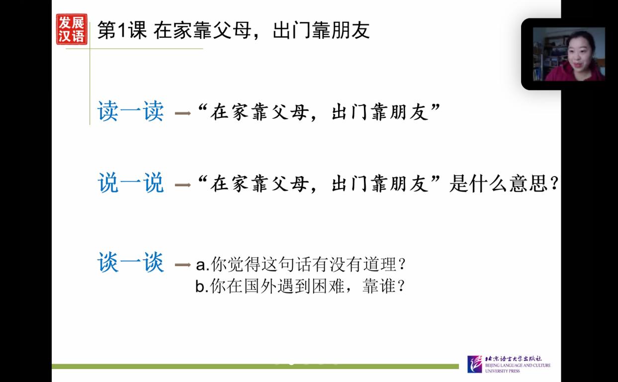 太阳官网语言生主要来自英国、泰国、尼日尼亚,韩国、意大利等国家,根据学生起始汉语水平分为A2班、B1班、B2班、C2班4个班级。因地域跨度大时差问题特别突出,经过各班主任和学生的沟通,每个班级的时间又进行了重新调整。为方便学生,有的教师甚至牺牲自己休息时间,把课程安排到了晚上。对于实在无法跟班上课的学生,老师们采用录课的形式,发给学生自主学习。