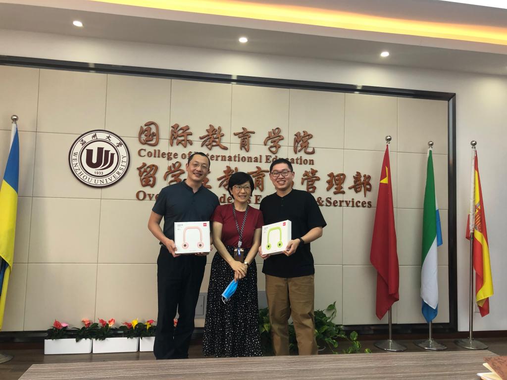 会后,学院党总支书记林爱菊为第一期“国教微享会”主讲人刘天与本期“国教微享会”熊勇颁发精美的小礼品。