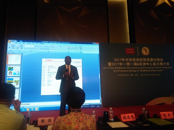 坦桑尼亚驻华大使作为嘉宾在“一带一路非洲中心五月推介会暨资源对接会”介绍该国投资