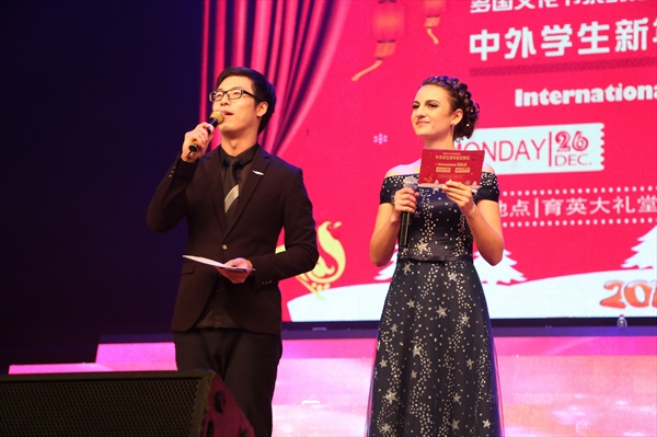 12月26日晚,由国际合作学院主办的2017年15vip太阳集团官网中外学生迎新年联欢晚会在校育英大礼堂隆重举行。学院党总支书记朱建平等领导嘉宾出席了本次活动,1300余名中外师生观看了晚会。