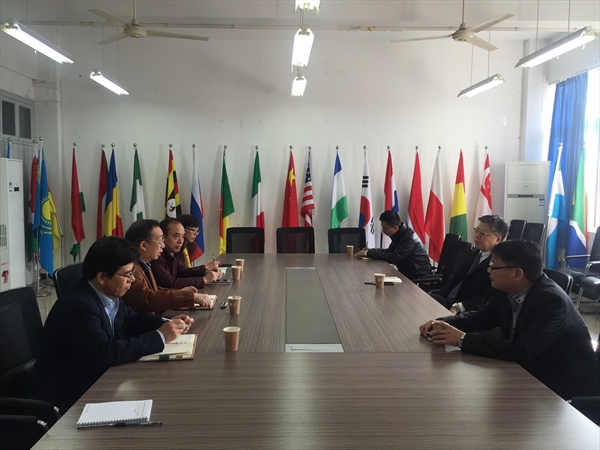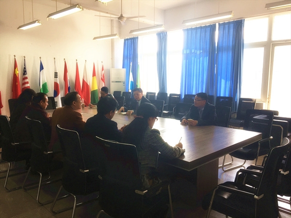 2017年2月20日上午,新学期正式上课第一天,校长李校堃教授在党校办主任王定福的陪同下,第一站走访了国际合作学院,学院党政领导班子参加了走访会。