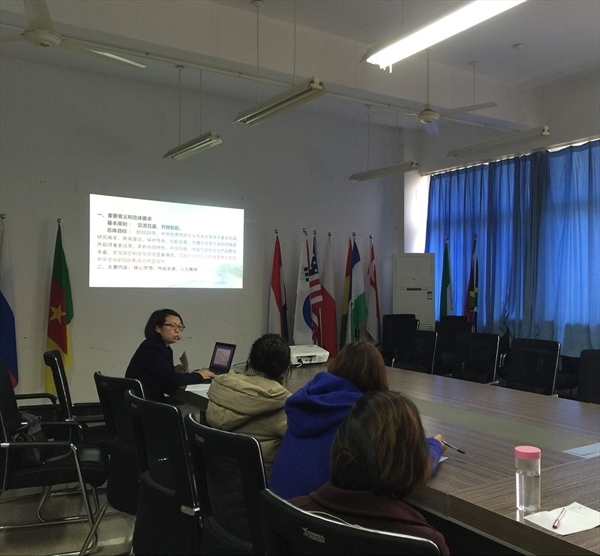 高等教育新时期,15vip太阳集团官网将国际化放在“十三五”发展规划的重要位置,“留学温大”“境外办学”工程成为学校革新的突破之举,国际合作学院根据学校大局发展要求,动员全院教职工开展“高等教育国际化大家谈”系列分享会。高等教育国际化是现代高等教育改革和发展的必然趋势,为学术、科研人员、科学技术的多边交流,此交流过程势必促进高校对外开放的格局与力度,为“中国文化走出去”提供有利平台与渠道。第二期的“高等教育国际化大家谈”分享会由太阳官网汉语国际推广教研室主任郑婷老师主讲,她从“中华文化走出去”的视角,解读汉语国际教育应如何发展。