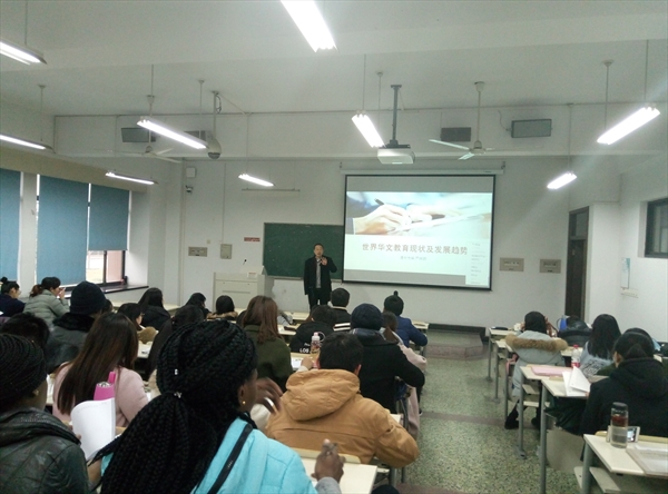 12月14日下午,应浙江师范大学国际文化与教育学院邀请,华文教育研究所所长严晓鹏博士为该学院汉语国际教育专业硕士近100位同学,作了《世界华文教育的现状及发展趋势》专题讲座。