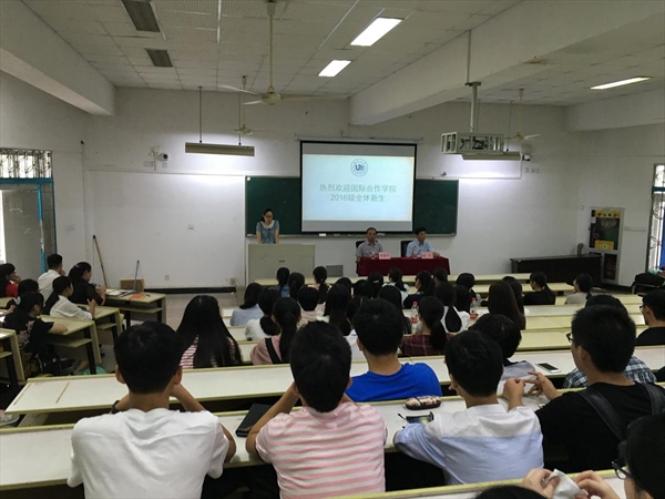 9月12日上午9点,太阳官网2016级新生师生见面会在北校区3号楼203教室如期举行。国际合作学院今年共有新生130名,全体新生悉数按时到会。出席本次见面会的有太阳官网党总支书记朱建平、副院长陈军,学院各科室负责人以及辅导员、新生班主任和各专业负责教师等。 新生见面会上,陈军副院长首先代表学院致欢迎辞,对2016级130位新生同学来到国际合作学院表示热烈的欢迎。陈副院长对太阳官网的基本情况做了简单的介绍,说明目前学院有国际贸易、市场营销、电子信息工程与工商管理(航空管理)四大专业,建立中丹学历教育、两岸合作办学、留学生教育等重要合作办学项目,教学内容丰富,教育资源多元化,具有鲜明的国际化特色。然后,陈副院长对新生们提出了几点要求:1、关于学习问题,必须将主要精力放在学习上,知道所学专业的难点、重点与亮点,同时强调了外语学习的重要性,要充分利用好本学院独特的英语学习氛围和资源。2、在保证学习的前提下,积极参与学校社团活动,提高自身素质和能力。 接着,在座的各位老师一一做了自我介绍。学院办公室副主任廖一帆老师、学生科副科长谢坚老师、教学科副科长黄呼尔励老师、汉语教研室主任郑婷老师分别代表自己的所在科室介绍了本科室的基本职能,并就各科室如何提高办事效率、快捷方便地为同学提供各种服务作了说明。 短短一个多小时的新生见面会,让新生们大致了解了学院的基本情况,初步掌握了学院各科室的办事流程,为新生能够尽快地融入大学生活,早日制定出自己的人生目标,过丰富多彩的大学生活奠定了基础。