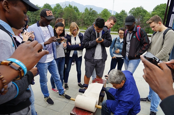 在浸染和晾晒工序后,留学生们终于看见了自己成品的样子,拥有了属于自己的第一份中国时间之蓝。