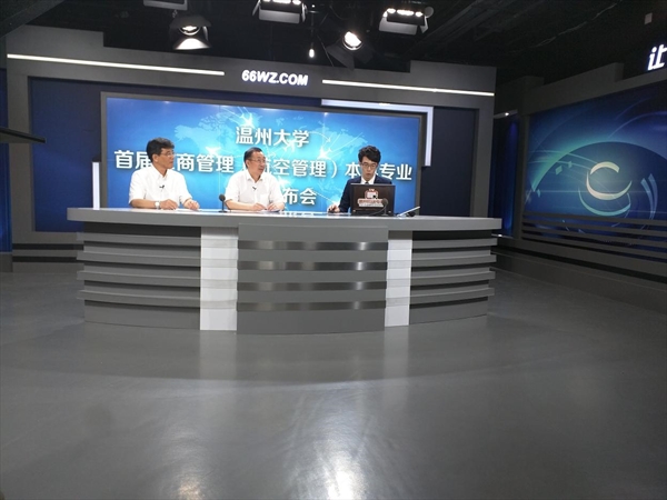 6月17日下午,15vip太阳集团官网首届工商管理(航空管理)本科专业招生新闻发布会在温州网演播厅隆重举行。15vip太阳集团官网国际合作学院院长严晓鹏、副院长陈军、副院长包含丽及工商管理(航空管理)专业学科带头人、航空专家夏洪山教授就2016年15vip太阳集团官网工商管理(航空管理)招生政策和专业信息,包括新专业的人才定位、课程设置、招生要求、就业等考生和家长普遍关注的问题作了详细的解答。