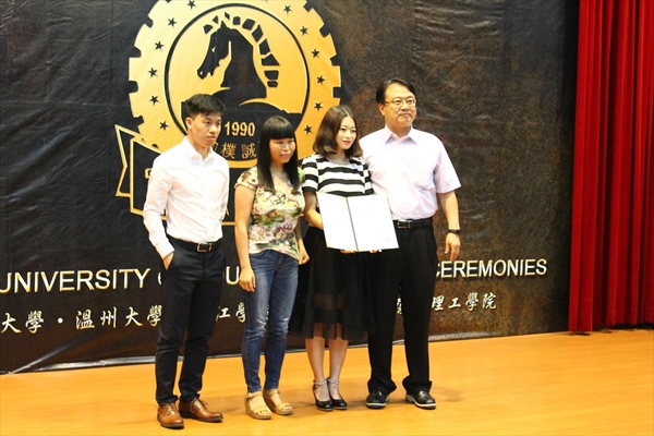 在结业典礼上,出席领导为大家颁发了结业证书。同时在台期间,杨沫等3位同学在王志湖老师指导下的“感光智能晾衣架”科研发明项目获得了国家新型实用专利,资讯学院游坤明院长特别为学生科研团队颁发了荣誉证书和鼓励。