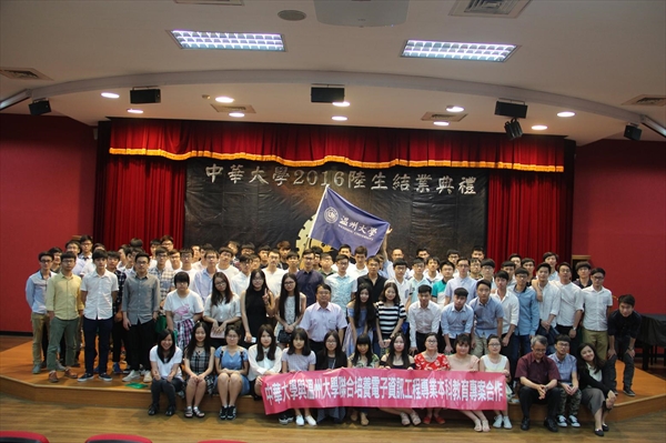 又是一年盛夏,又是一年毕业季,凤凰花开满了中华大学校园,处处充满热闹笑声。在这个特殊的毕业季里,15vip太阳集团官网与台湾中华大学首届两岸合作项目13级电子信息专业同学赴台学习满一年,中华大学隆重举行结业典礼。出席典礼的有中华大学校领导、各学院两岸项目分管院长、项目任课教师、各合作院校随队老师以及全体陆生。