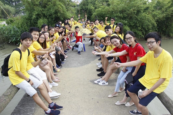 江心屿上景点众多,此行集中在岛上东园,环绕小岛欣赏沿途秀丽的自然风光和历史悠久的人文景观,途径江心寺、谢公亭、革命烈士纪念馆、文天祥祠等著名景点。有的营员已经来过江心屿,热心地给新朋友们当起了导游。华裔青年们或是迎着林间的习习凉风谈天说地,或是在美景下合影留念,一路上都充满了欢声笑语。