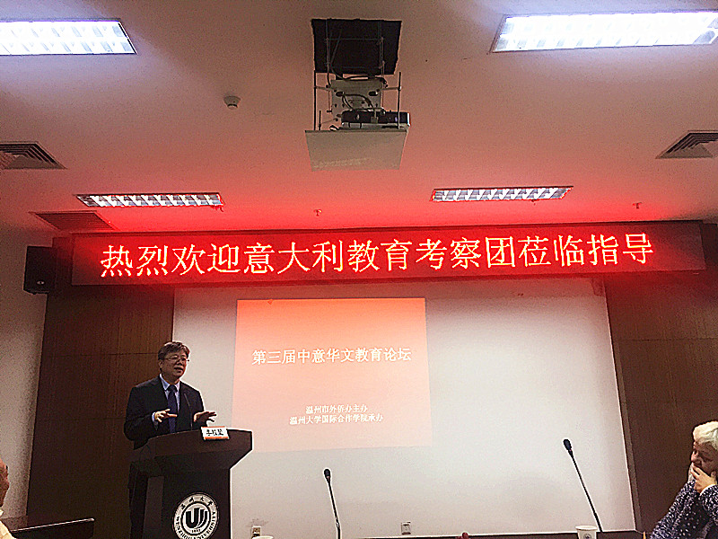 11月4日下午,李校堃校长会见了意大利华文教育考察团,该考察团由意大利托斯卡纳大区政府官员、意大利西耶纳大学、米兰天主教大学教授、COSPE(支持发展中国家协会)组织成员以及多所佛罗伦萨高中校长组成,省外侨办文宣处处长王云奇、温州市外侨办副主任许捷等陪同前来。