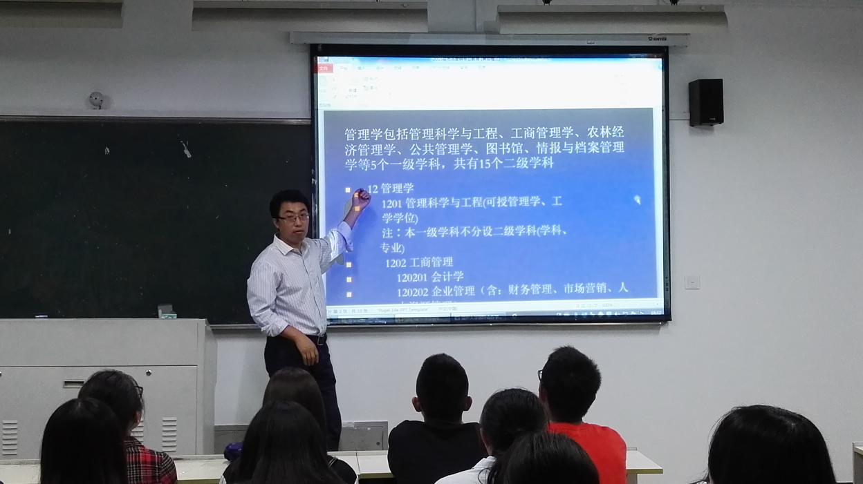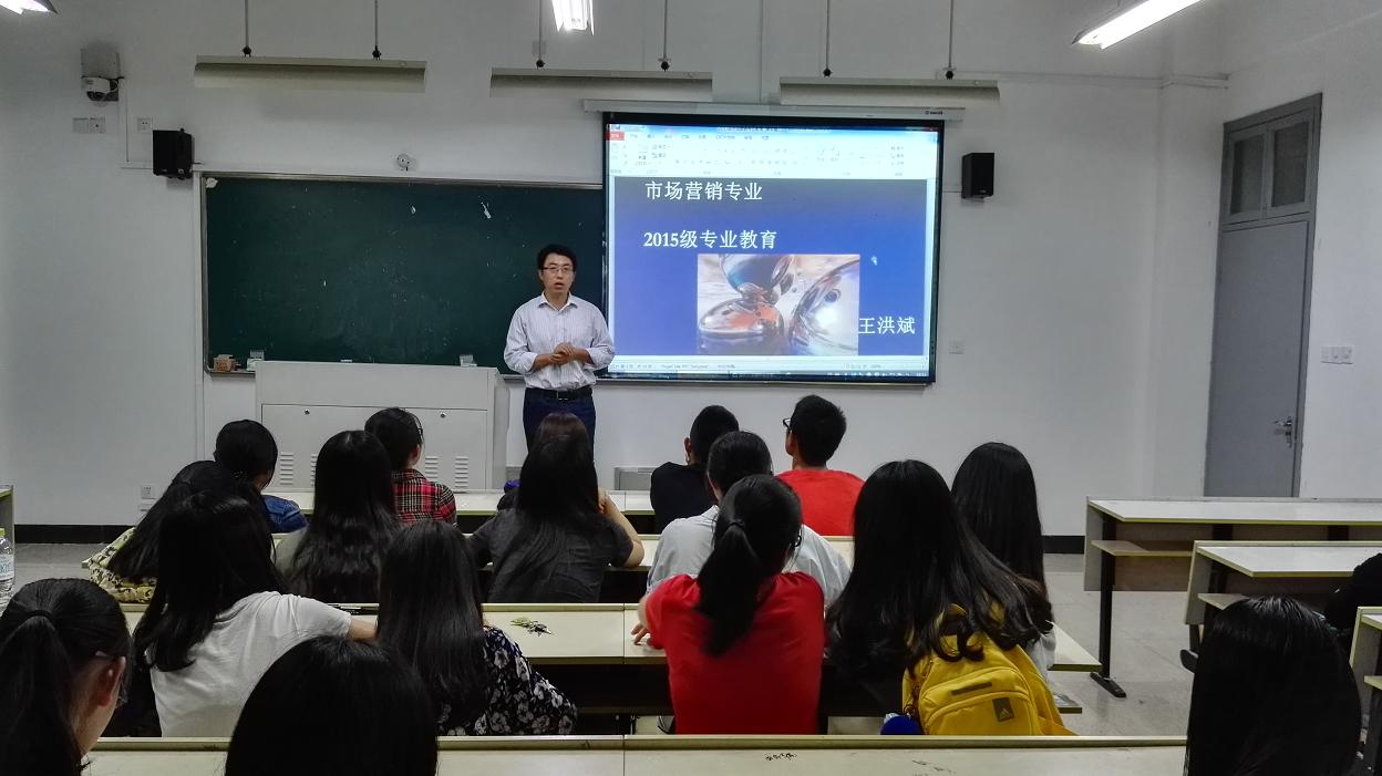 10月8日晚上18点30分,国际合作学院王洪斌博士在北校区3号楼307教室为中丹合作项目市场营销专业全体新生开展专业导读课,太阳官网2015级市场营销专业的46位新生共同聆听了王博士的专题解读。