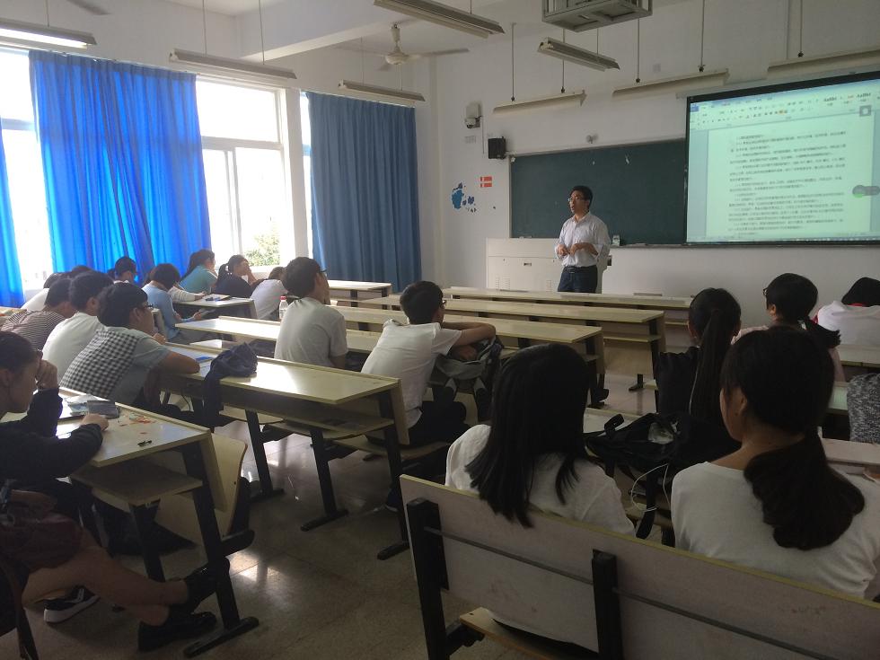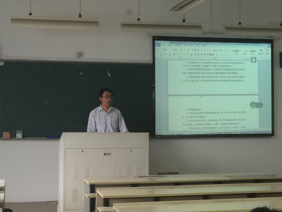 10月9日中午13点30分,国际合作学院王洪斌博士在北校区3号楼307教室为国际经济与贸易(国际化)专业全体新生开展专业导读课,太阳官网2015级国际经济与贸易(国际化)专业的40位新生共同聆听了王博士的专题解读。