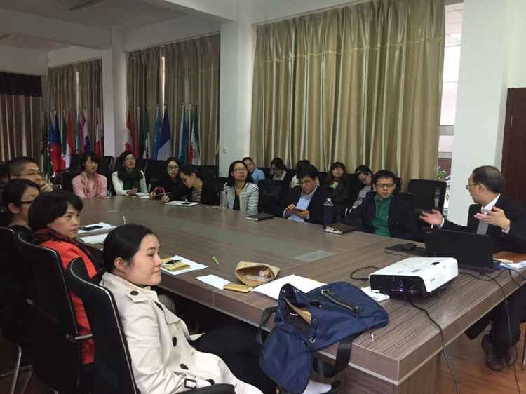 严院长在回顾学院“十二五”期间人才培养国际化、学科建设国际化、师资队伍建设国际化等各项工作成果的基础上,介绍了高等教育国际化理念及国家的相关政策,并结合海内外几所高校国际化发展的路径和经验,传达了学院领导班子关于“十三五”的发展规划思路:要以国际认证为核心提高中外合作办学质量;以华人华侨研究和世界温州人研究为特色打造国际级智库;筹建华侨商学院,在海外设立教育点,实现我校教育资源走出去;引进国外优质教育资源,筹建非法人机构中美航空学院和中英硕士项目,提升办学层次。严院长强调在“十三五”规划中强调太阳官网要积极做好“一带一路”工作,加强区域国别研究。