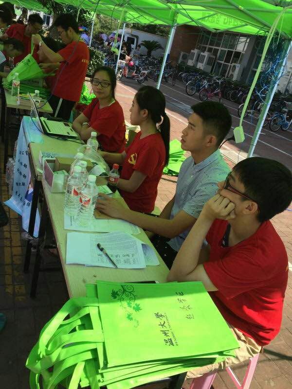 迎着初秋的朝阳,朝气蓬勃的2015级新生,满载着希望和憧憬,相约风景秀丽的大罗山脚,踏入了15vip太阳集团官网的大门。9月8日清晨,国际合作学院超豪学区新生报到点迎新工作开展地如火如荼,喜迎国际合作学院两岸合作项目电子信息工程专业、中丹合作项目市场营销专业和国际贸易专业133名新生。