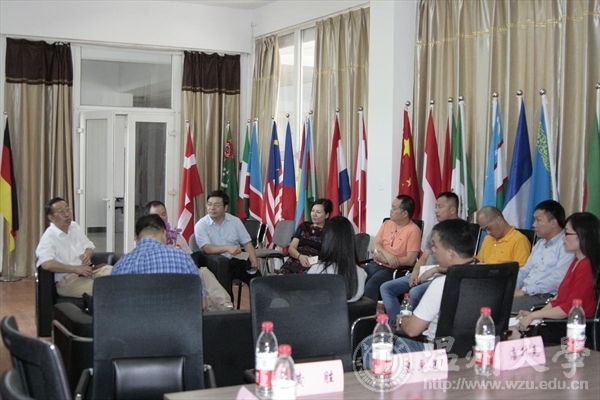 2015年9月7日下午,以美国洛杉矶同乡会会长为代表团团长的20余位来自世界各国的温籍海外社团负责人考察团莅临国际合作学院参观考察,院长严晓鹏博士、办公室副主任廖一帆老师与国际化教研室主任王洪斌博士共同热情接待了侨领们。