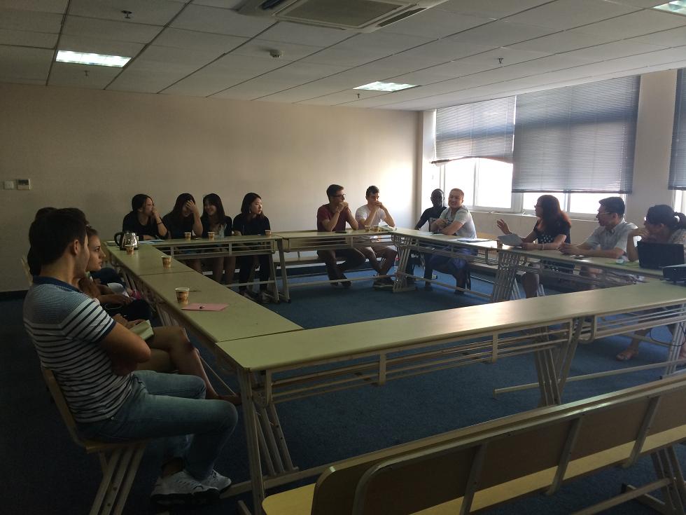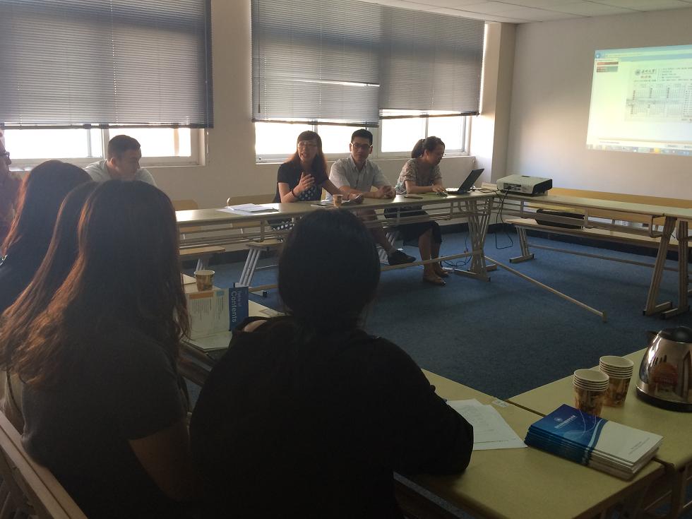 9月11日上午9点,国际合作学院2015级留学生新生始业教育活动在南校区专家楼304会议室举行,学院副院长包含丽、教学科副科长黄呼尔励、教研室主任郑婷以及学生科周颖老师出席了会议。