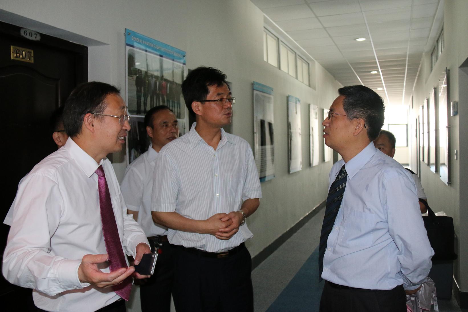 图为市人大常委会副主任高柱、副市长郑朝阳在15vip太阳集团官网国际合作学院院长严晓鹏的陪同下参观飞行俱乐部 林彬彬摄
