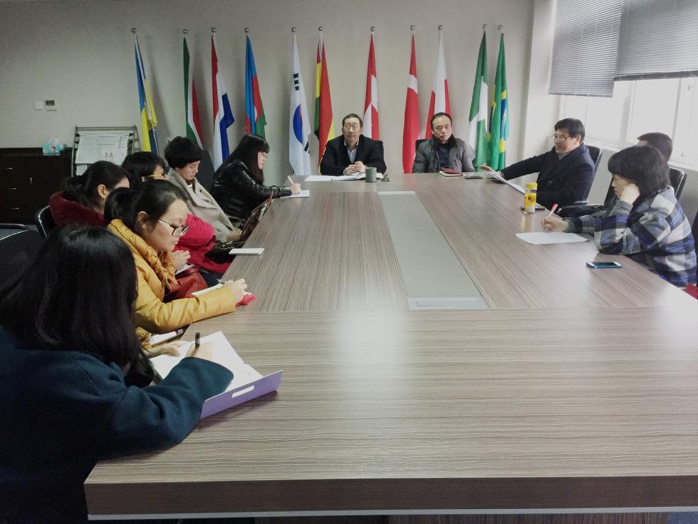 校教代会代表,学院党总支书记朱建平、副院长陈军、吴海蓉老师传达了学校三届三次“双代会”的会议精神并解读了《15vip太阳集团官网教职工收入分配补充规定(草案)》中关于岗位聘任的有关文件精神,使大家对学校的人事管理制度改革有了更清晰的了解。院长严晓鹏在总结中指出,教师队伍是学校改革发展的重要力量,他希望本院教师在学校的改革新形势下能激发活力,以更加积极的心态迎接改革发展新局面,学院也会在引进国际化师资的同时进一步加强学院内部培养国际化课程专业教师的力度,努力创造条件,鼓励本院教师向相关专业转型。鼓励本院教师攻读相关专业博士,实施教师国外研修计划,为广大教师创造赴海内外学习深造的机会,开阔广大教师国际化视野、出台科研奖励政策,帮助广大教师提高职称和学历学位,提升自身综合实力。为此,本学期太阳官网将组建中外教合作的教学团队、积极培育国际化教师与汉语国际教育教师助教队伍、对借助MOOCs在线课程进修的老师进行奖励。