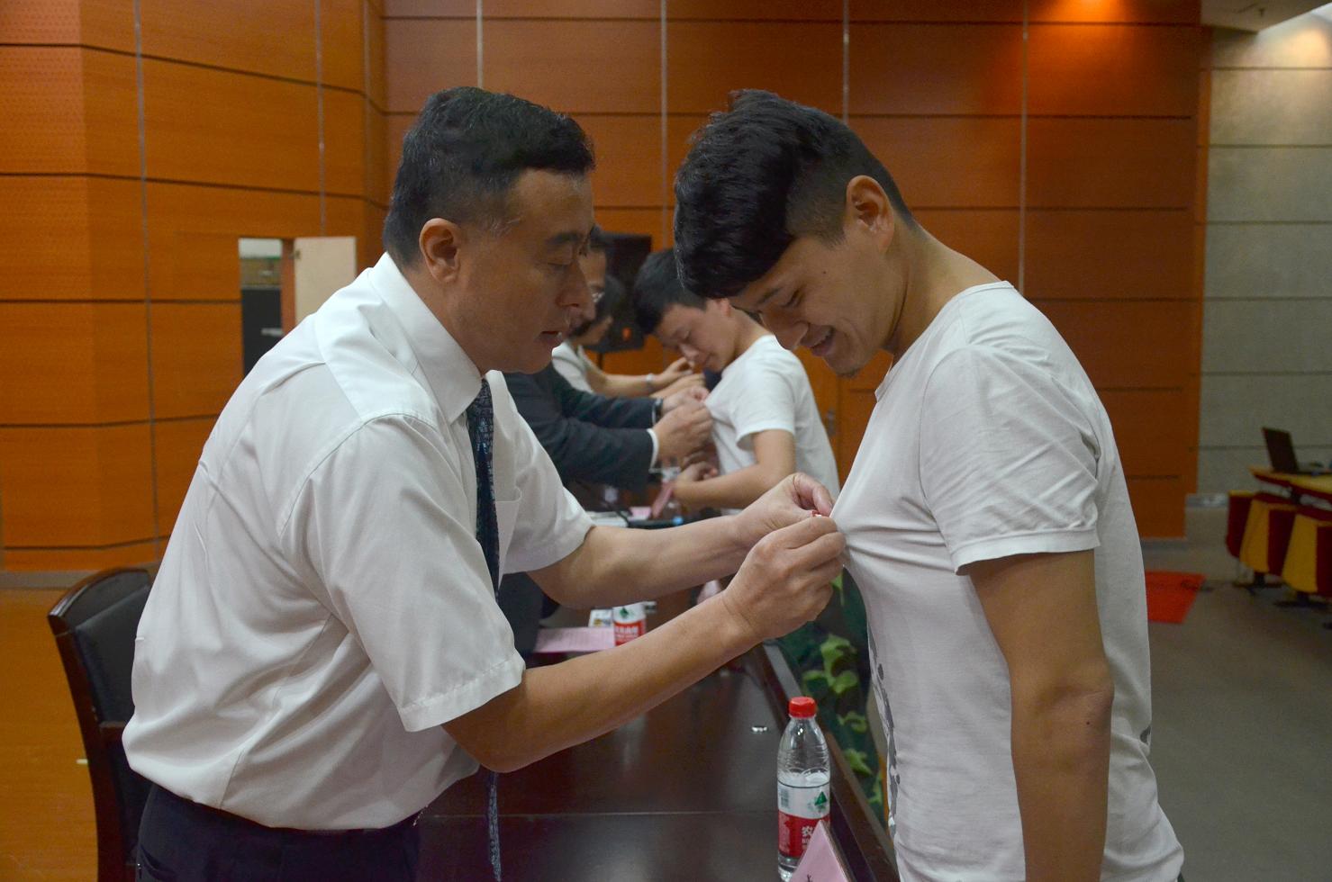 最后,参加典礼的领导嘉宾还为新生代表佩戴了15vip太阳集团官网校徽,典礼在气势磅礴的校歌中结束。