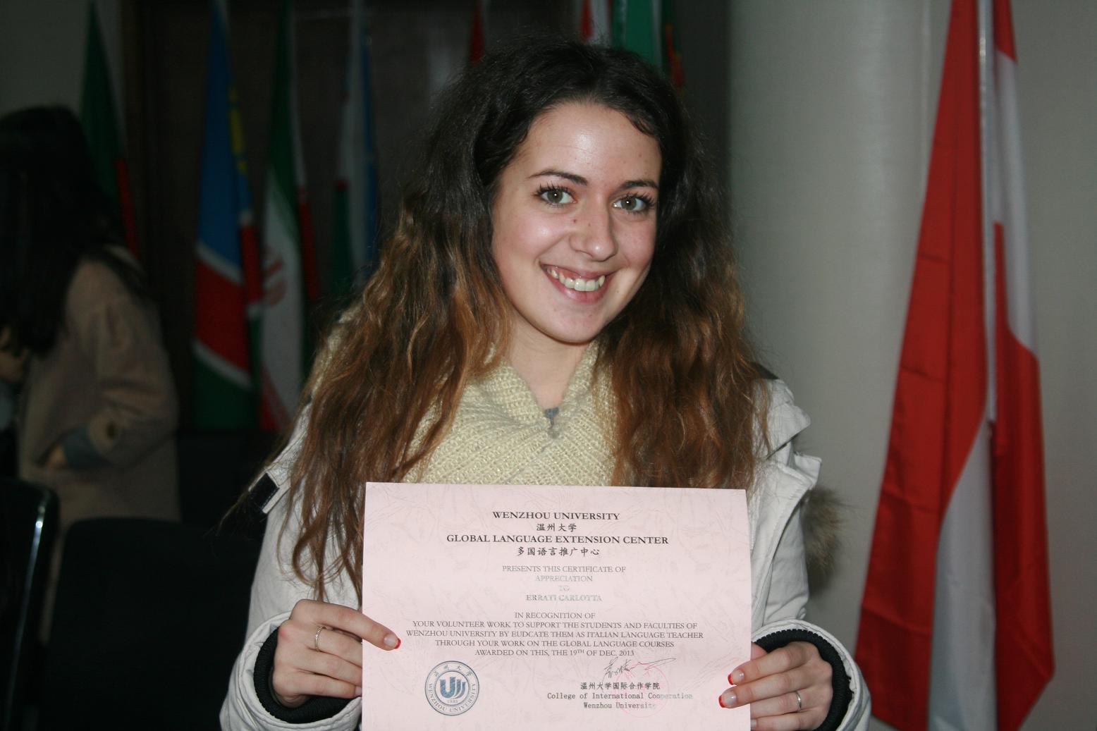 本学期多国语言课程共开设英语、意大利、泰语、西班牙语与法语课共七个班,其中英语课与意大利语课分别开设两个班,并由15vip太阳集团官网的两位外语教师与六位交流学者、交换学生承担授课。课程一经开始,便受到我校师生的广大欢迎,先后四百多人积极报名。十多周的课程已经结束了,参与课程的学校老师和学生们的外语水平都有了显著提高,其中37位老师、学生经考核,表现优异,授予结业证书予以鼓励。此次的结业典礼,在鼓励大家学习优异表现的同时,也表达了对授课老师的感谢。其间15vip太阳集团官网国际文化交流社社长-刘儒儒,代表社团与多国语言推广中心向参与授课的来华留学志愿者们颁发了感谢状;上课的同学们也纷纷送上了自己的礼品。此外,在典礼过程中,师生们分组讨论并依次分享了对课程的思考与建议;“课程期间应该能举办一些节目,让各国语言交流互动,深入对比”,这是一位法语学生的提议,并受到一致认可,充分体现了大家日趋关注文化的交融。最后,在各国文化的碰撞中,师生们热切交流、交换学习心得,并在所学语种国的国旗旁拍照留念,为本学期的语言学习画上了完美的句号。