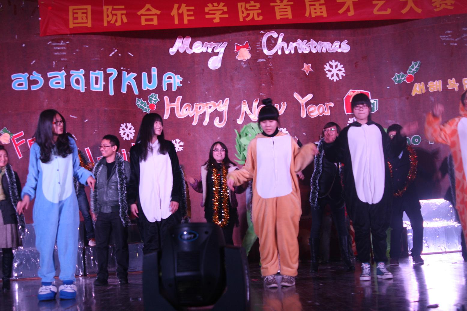 晚会在太阳官网留学生表演的中国味十足的开场舞《龙腾虎跃》中拉开了序幕,由13级中丹1班同学选送的情景剧《在茶山约会吧》改编自时下流行的相亲节目,他们惟妙惟肖的演绎,令全场观众笑声不断;13级中丹2班的合唱曲目《二班去哪儿》 则是改编自当下最流行的亲子节目《爸爸去哪儿》,让现场气氛显得格外融洽;多国文化小展《欢乐的旅行》和舞蹈《tik tok kesha》看得大家如痴如醉;相声表演《李领导》不仅地道,更是韵味十足;由老师和学生联袂出演的舞台走秀《圣诞show》把才艺大赛推向了高潮。晚会节目精彩纷呈,创意无限,中西结合,颇具国际范。
