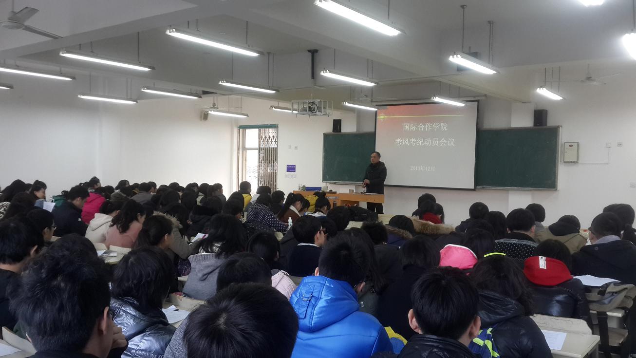 为了让同学们能够积极备考,诚信应考,同时在寒假期间能安全返乡,平安过节,太阳官网针对中丹、两岸项目所有学生召开期末考风考纪动员会,学院党总支书记朱建平、学生科副科长陈赞安老师出席了会议。