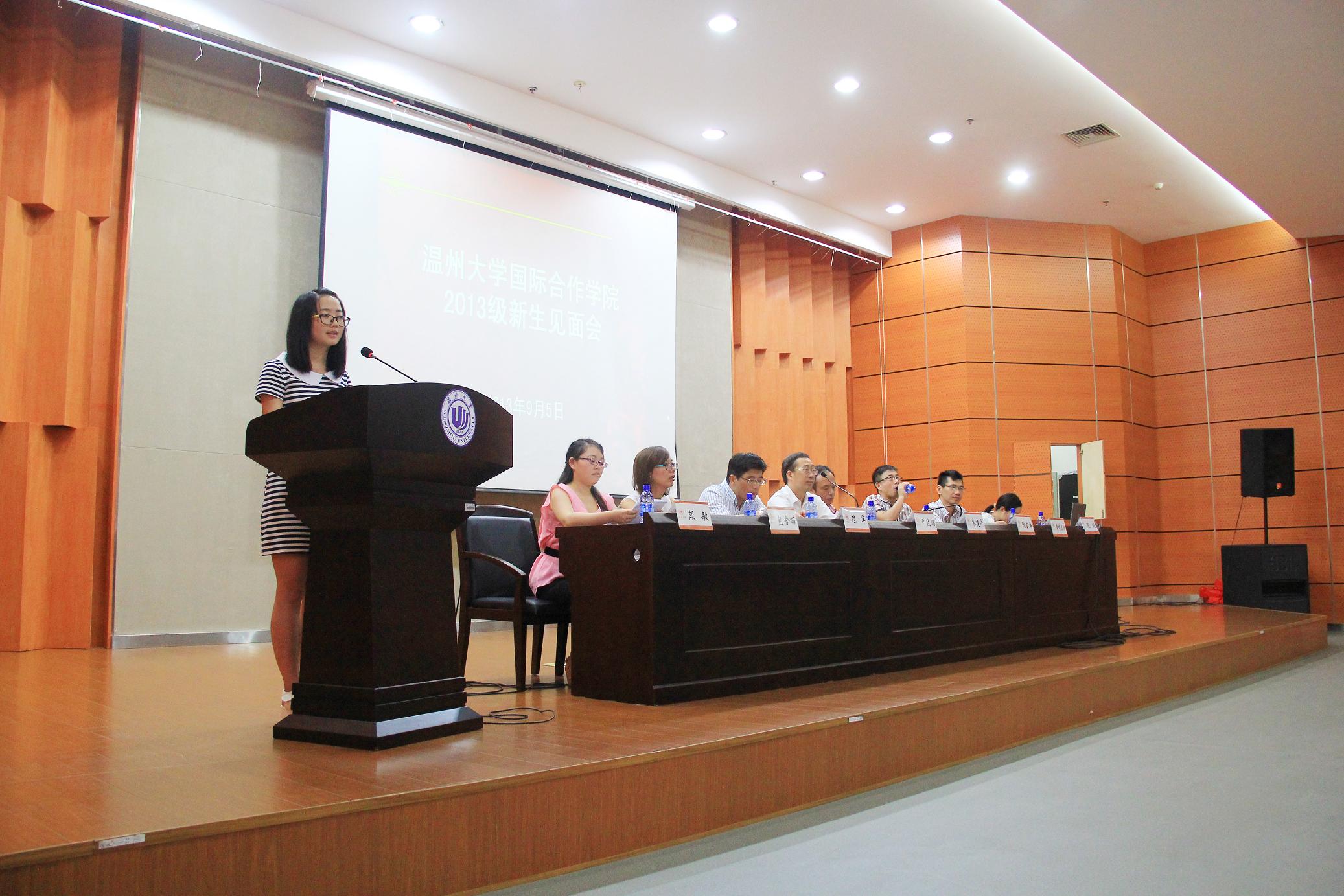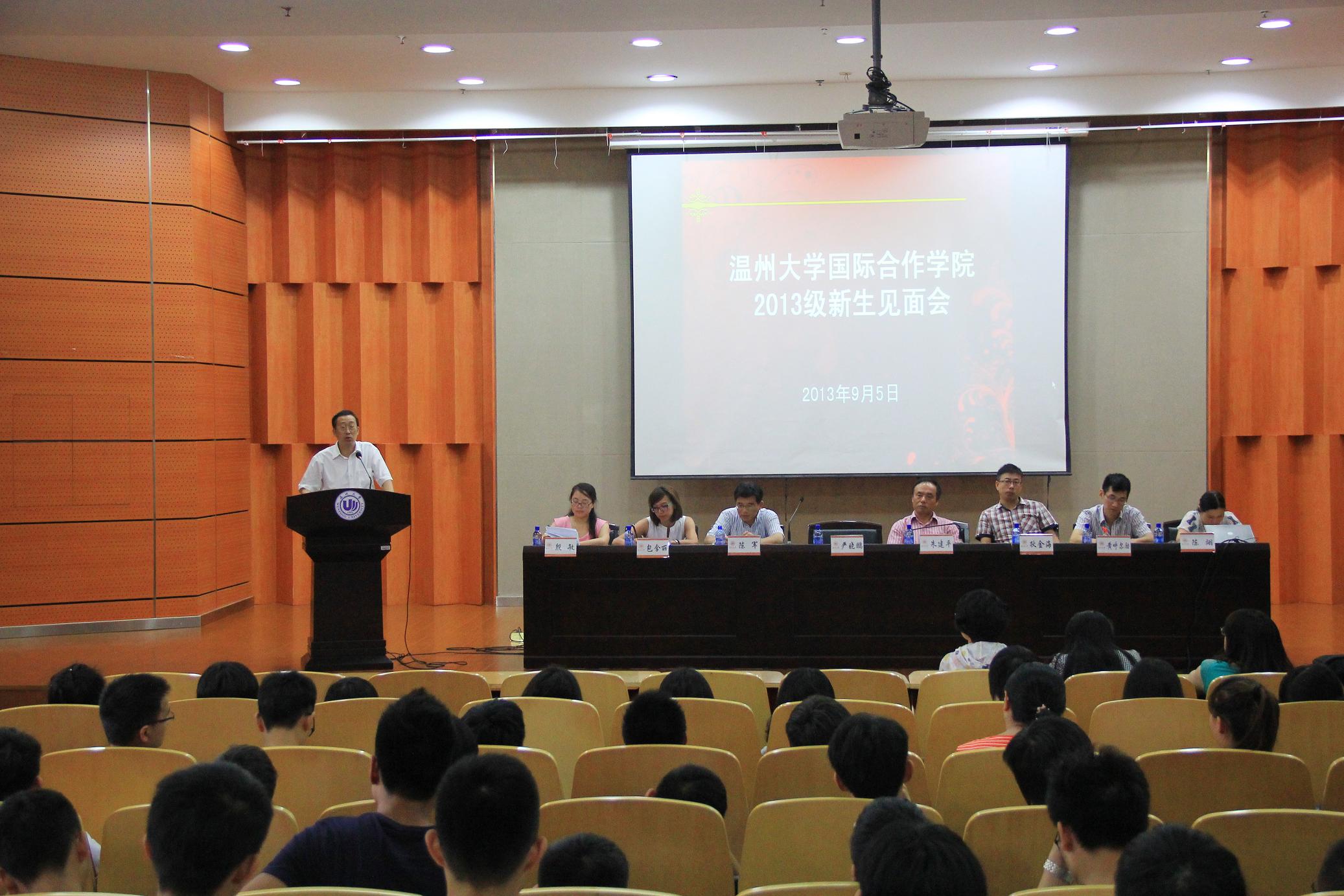 9月5日上午,太阳官网2013级新生见面会在南校区岩松堂雁山厅举行。出席见面会的有学院院长严晓鹏、党总支书记朱建平、副院长陈军、院长助理狄金海,学院各科室负责人以及辅导员、新生班主任和老生代表等。国际合作学院今年共有新生160余名,全体新生悉数按时到会。