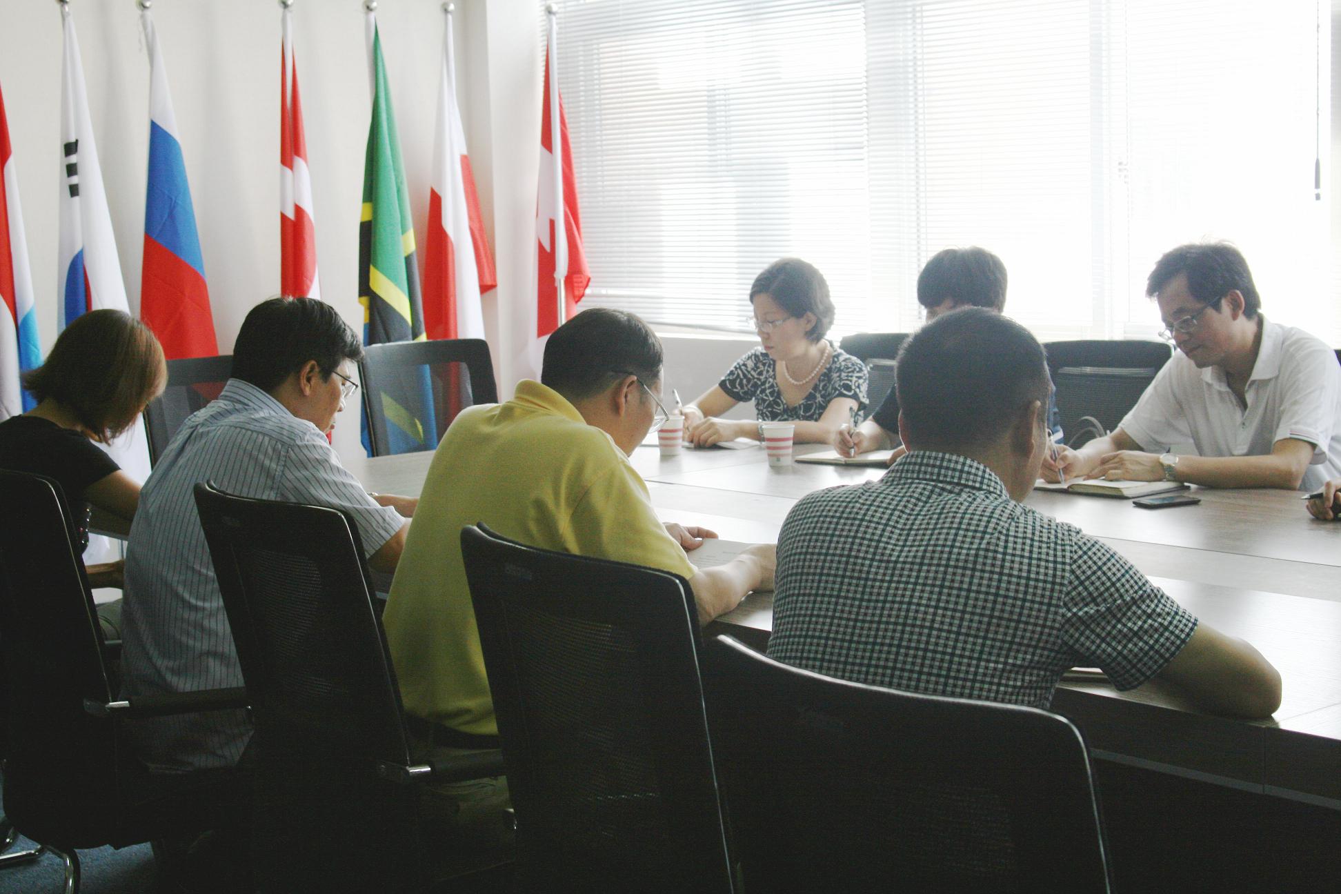 严晓鹏院长汇报了学院的发展历程,近年来取得的标志性成果,当前学院的运行状况:中丹合作办学项目、两岸合作办学项目以及留学生教育的教学模式以及财务状况等,分析了处于创业发展阶段中学院面临的机遇和挑战,特别提出了在当前学院的运行体制不确定的情况下,学院在人才引进、师资队伍建设、教学工作安排、教改科研等各方面存在一定的困难。朱建平书记也就太阳官网各项实际工作中的一些特殊性进行了阐述,希望学校领导及有关部门能给予更多更大的政策支持和扶持力度。会上人事处、计财处、外事处负责人也就太阳官网的运行体制,特别是财务机制提出了中肯的意见和建议。