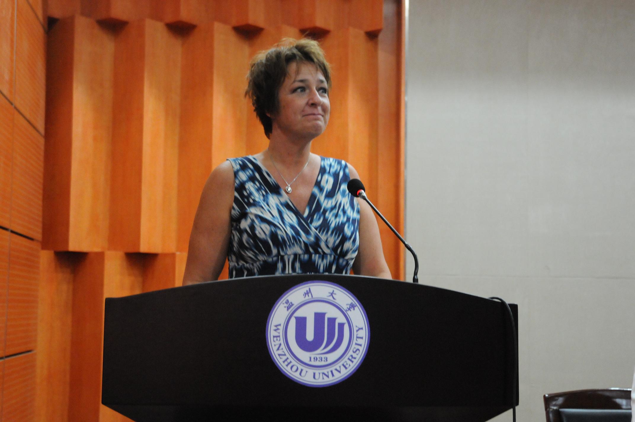 随后,国际合作学院教师代表Nora Hayward (外籍教师)结合自己所授课程与同学们在学习态度、学习方法等方面做了真诚的交流。最后,2012级老生代表李冬、2013级新生代表单静怡也分别用流利的英语进行了发言。