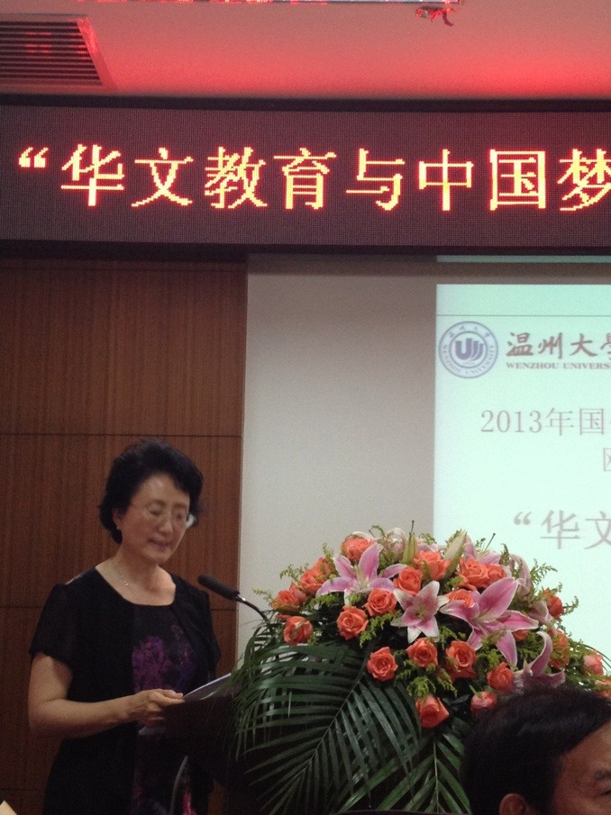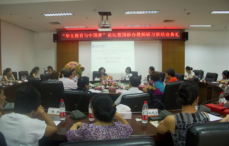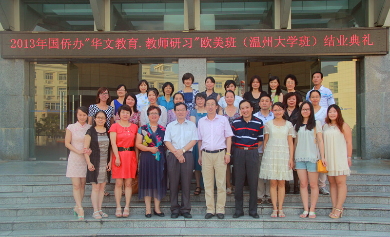 7月24日下午,15vip太阳集团官网在茶山南校区岩松堂展示厅隆重举行“华文教育与中国梦”论坛暨2013年“华文教育•教师研习”欧美班结业典礼。浙江省人民政府侨务办公室副主任徐高春,文宣处处长王云奇,温州市侨办副主任许捷,党组成员、文宣处处长叶斌斌,15vip太阳集团官网国际合作学院院长严晓鹏等领导出席了本次论坛暨结业典礼。