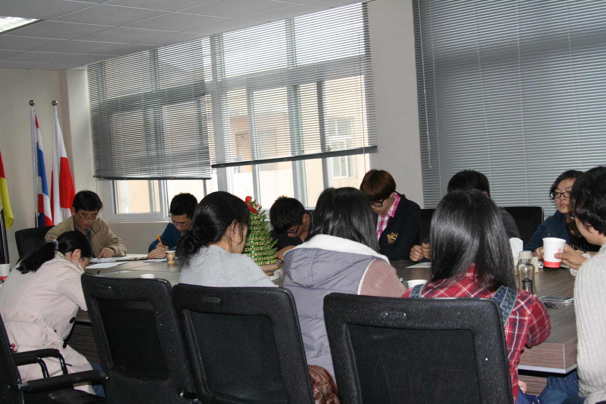 2013年4月22日下午3:30,作为国际合作学院2012-2013学年第二学期期中教学检查活动之一的中丹合作项目学生代表座谈会在专家楼305会议室顺利召开。教学副院长陈军、学生科科长陈赞安、2011和2012级中丹班学生代表以及其他相关老师出席座谈会,会议由教学科黄呼尔励老师主持。
